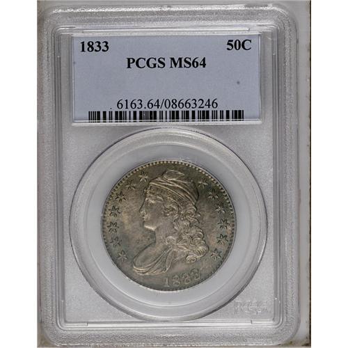 1833 50C MS64 PCGS. O-114, R.2. A pleasing blend of se