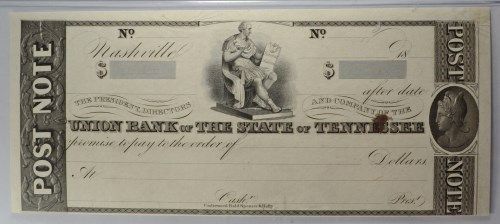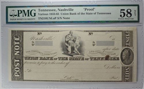 1833-65 PROOF UNION BANK OF THE STATE OF TENNESSEE, NASHVILLE POST NOTE PMG 58