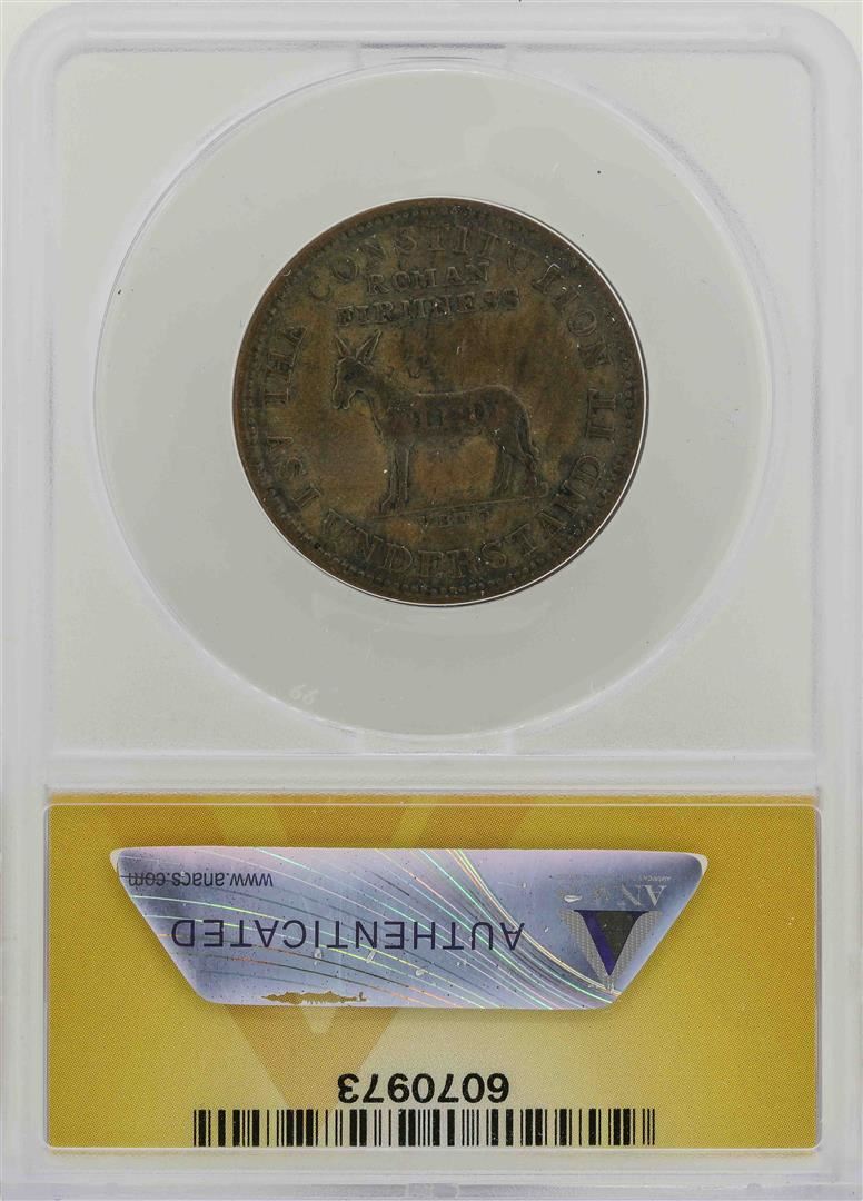 One 1833 Andrew Jackson Hard Times Token ANACS VF35. ANACS Appraised.