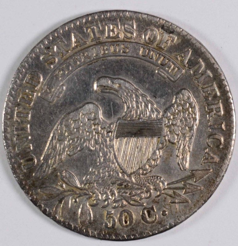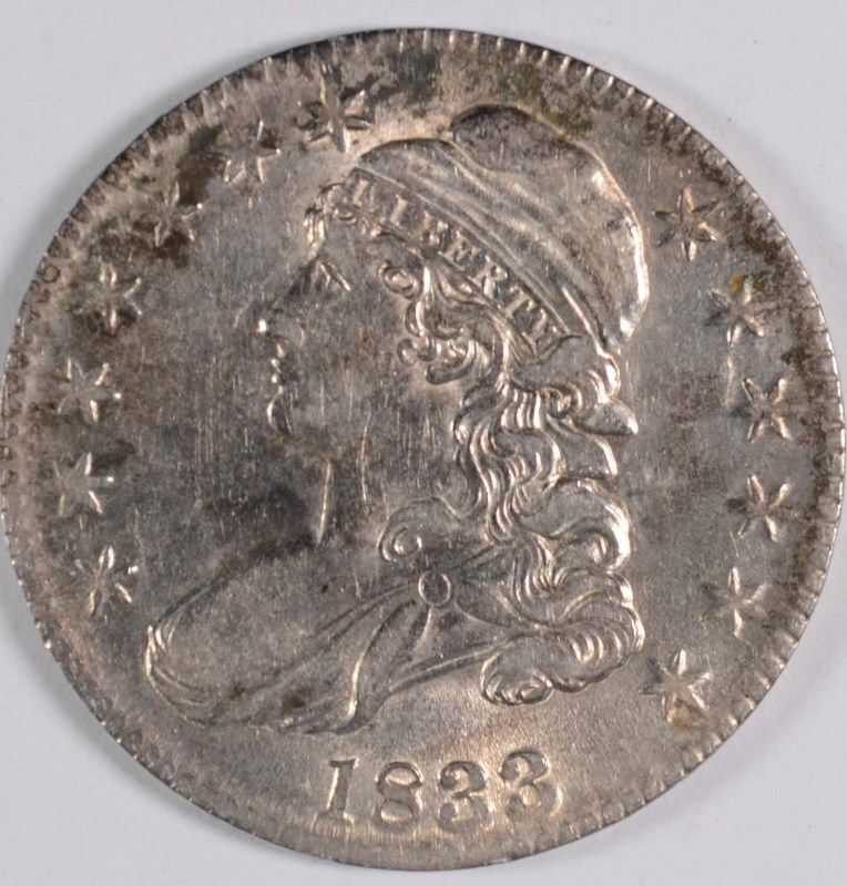 1833 BUST HALF DOLLAR, AU-55 LOTS OF LUSTER!