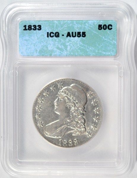 A VERY NICE BUST HALF DOLLAR, ESTIMATE $420.00 TO $445.00 We take pride that Silvertowne Auctions is now ranked #1 on Proxiblog's rankings of online coin auctions