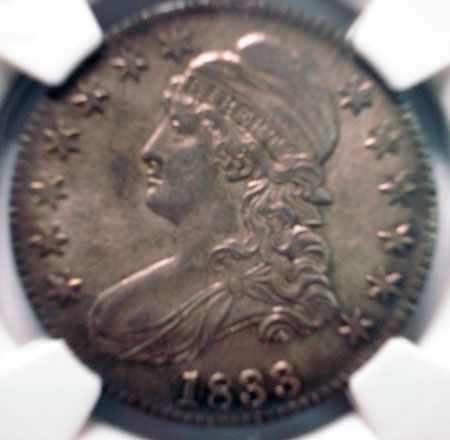 1833 BUST HALF DOLLAR NGC MS63 100% ORIGINAL,SUPER STRIKE, GREAT COLORS!