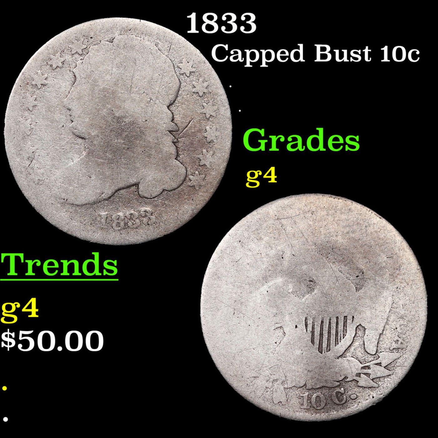 1833 Capped Bust Dime 10c Grades g, good.