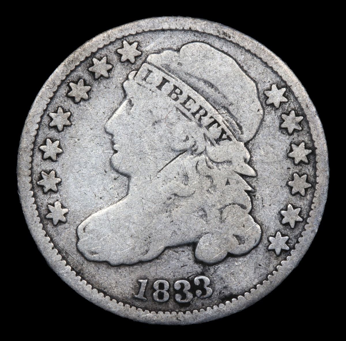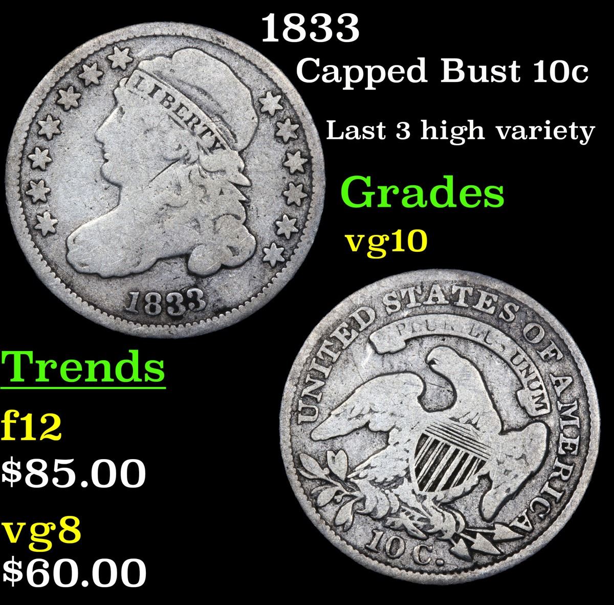 1833 Last 3 high variety . Capped Bust Dime 10c Grades vg+.