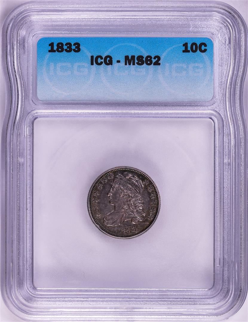 One 1833 Capped Bust Dime Coin ICG MS62. ICG Certified.