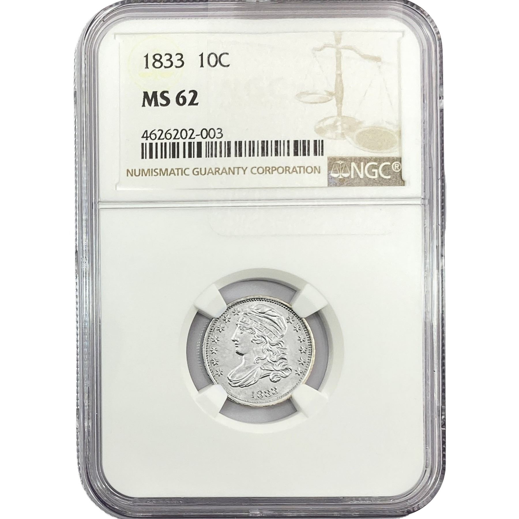 1833 Capped Bust Dime NGC MS62