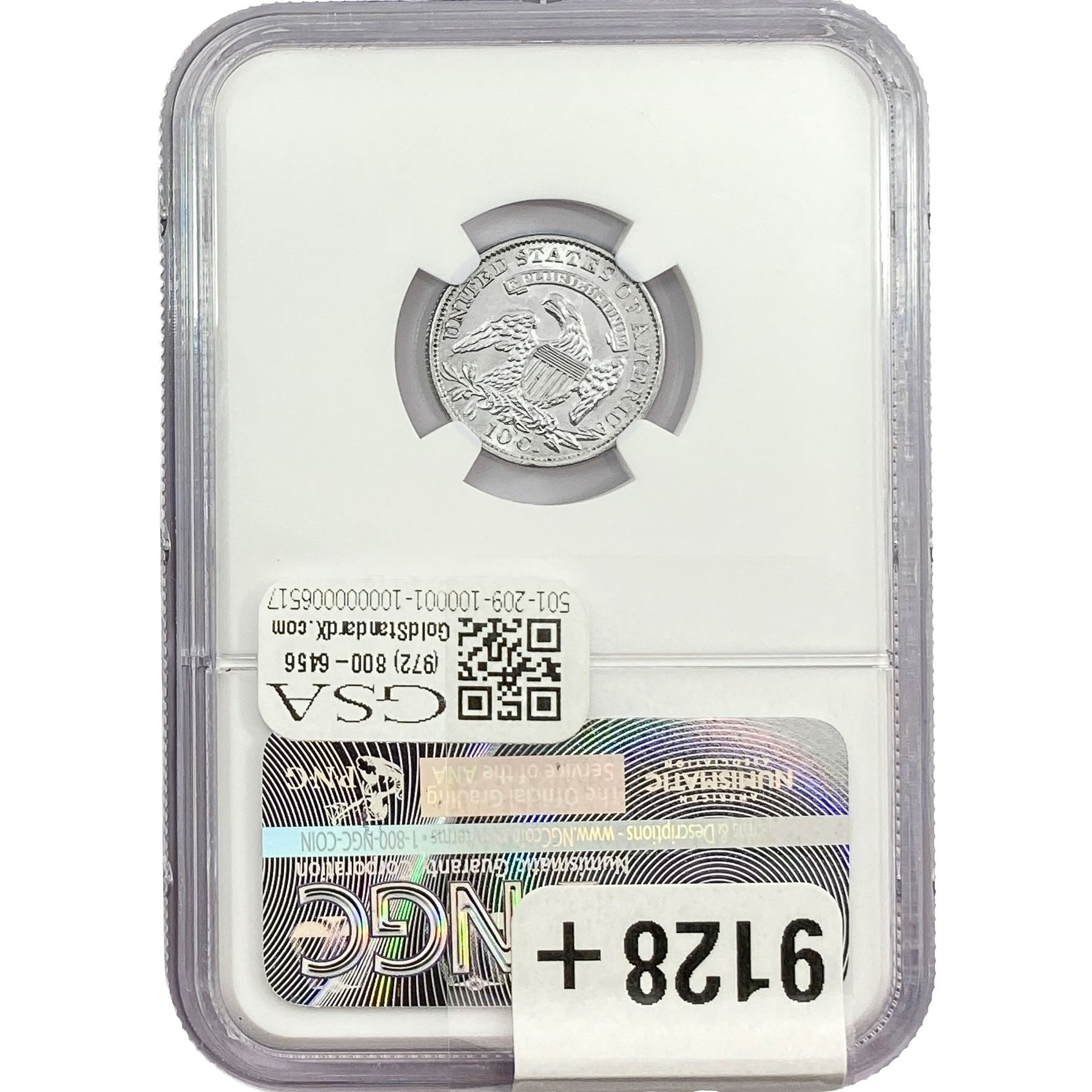 e. Coins sold referencing a third-party grading service are sold “AS IS” without any express or implied warranty, except for a guarantee by GSA that they are genuine. Removal or alteration of the holder, voids all of Bidder’s claims concerning that Product. Certain warranties may be available from the grading services and Bidders are referred to them for further details: Numismatic Guaranty Corporation (NGC), PO Box 4776, Sarasota, FL 34230, www.ngccoin.com/services/writtenguarantee.asp; Professional Coin Grading Services (PCGS), PO Box 9458, Newport Beach, CA 92658, www.pcgs.com/guarantee.html; ANACS, 6555 S. Kenton St., Ste. 303, Englewood, CO 80111; and Independent Coin Grading Co. (ICG), 7901 East Bellview, Ave., Suite 50, Englewood, CO 80111.