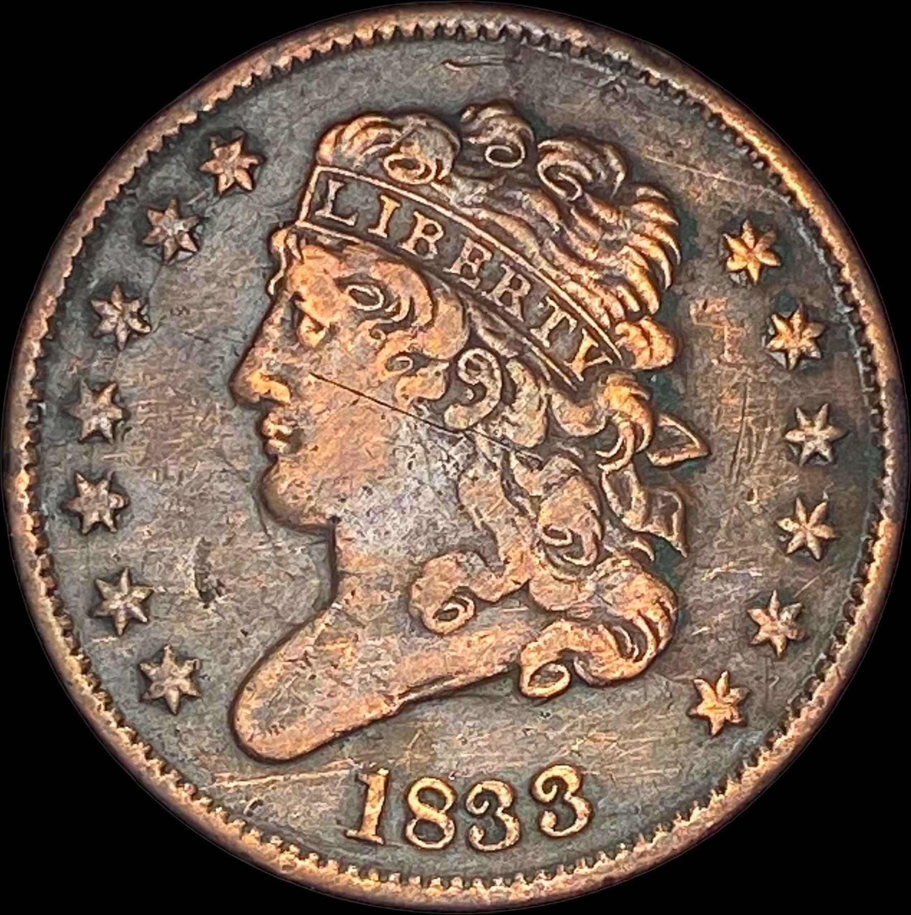 1833 Capped Bust Half Cent NEARLY UNCIRCULATED