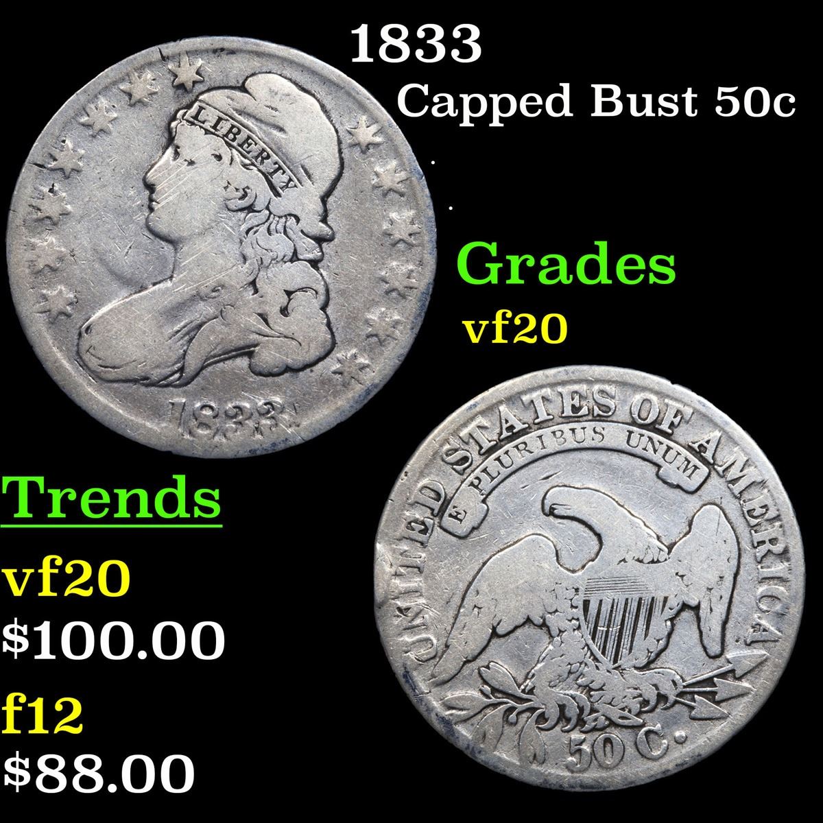 1833 . . Capped Bust Half Dollar 50c Grades vf, very fine.