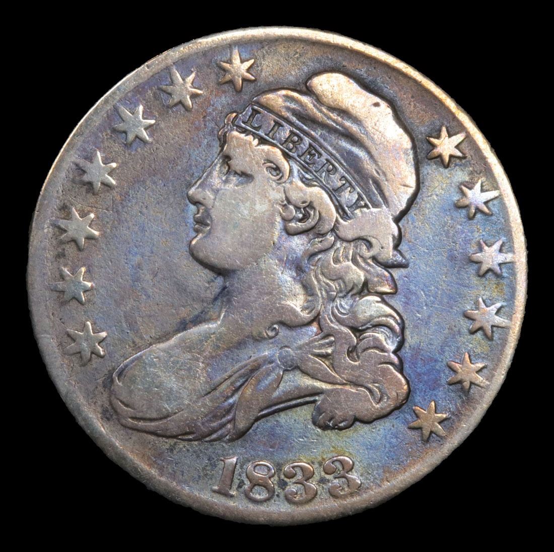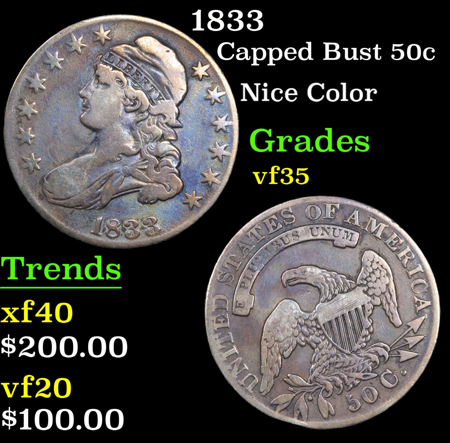 1833 Nice Color . Capped Bust Half Dollar 50c Grades vf++.