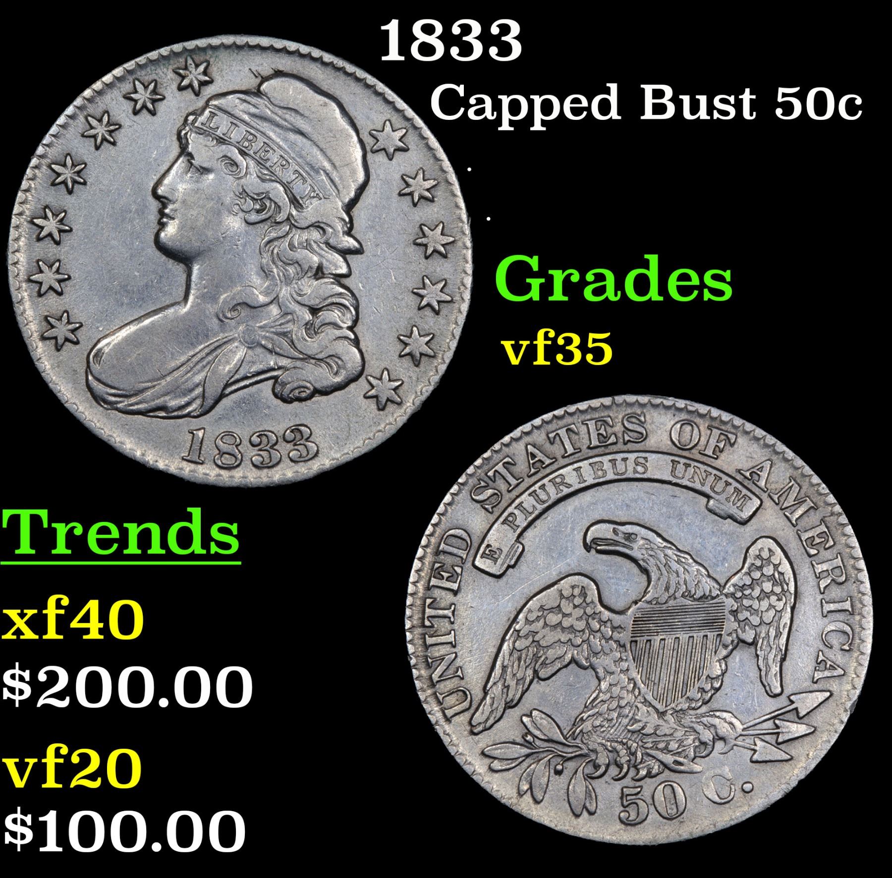1833 . . Capped Bust Half Dollar 50c Grades vf++.