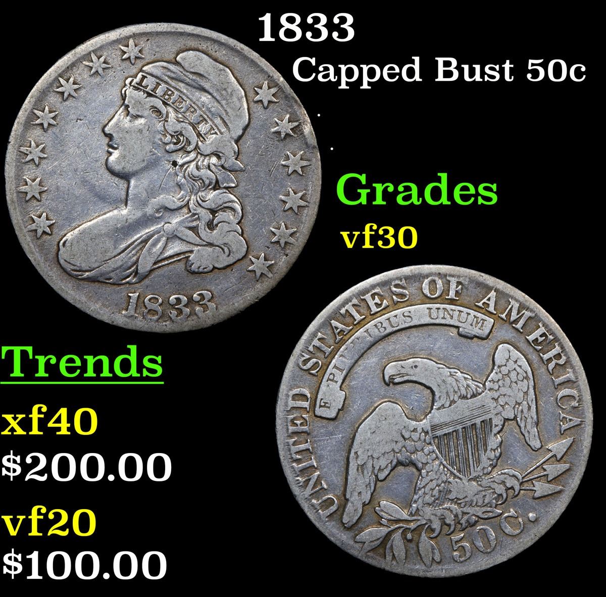 1833 Capped Bust Half Dollar 50c Grades vf++.