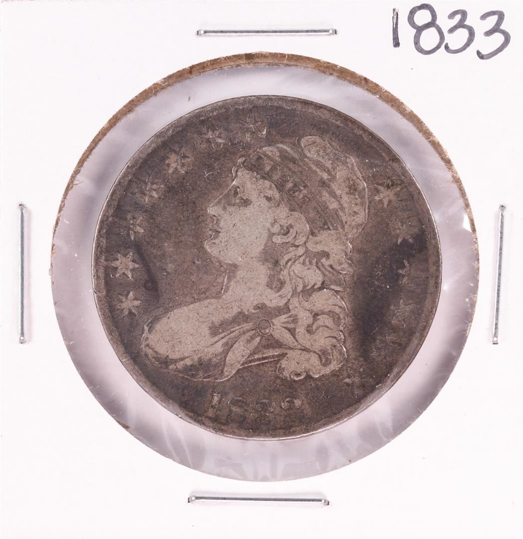 One 1833 Capped Bust Half Dollar Coin.