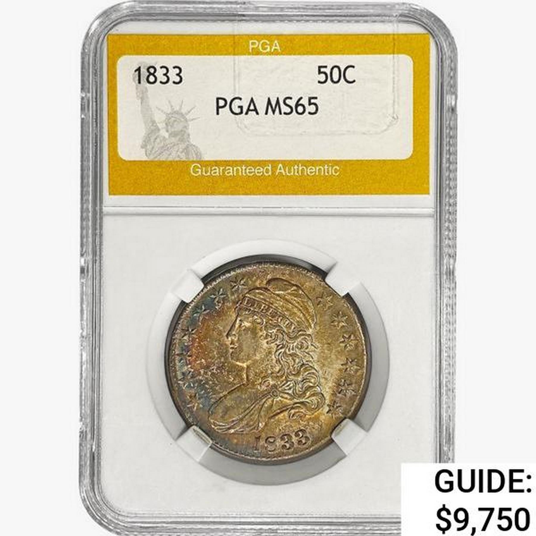 1833 Capped Bust Half Dollar PGA MS65