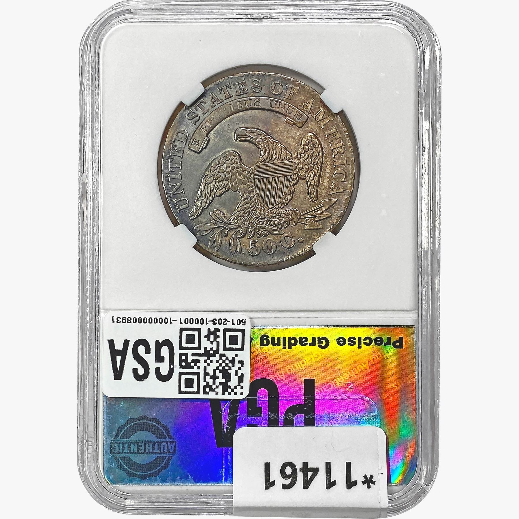 COINS AND CURRENCY LISTED IN GSA’S CATALOG AS GRADED AND ENCAPSULATED BY PCGS, NGC, ANACS, ICG, PCGS CURRENCY, PMG, PCGS BANKNOTE GRADING, CMC OR ANY OTHER THIRD-PARTY GRADING SERVICE ARE LIKEWISE SOLD “AS-IS” EXCEPT AS EXPRESSLY SET FORTH HEREIN. ALL THIRD-PARTY GRADING SERVICE GUARANTEES, INCLUDING AUTHENTICITY, ARE THE SOLE RESPONSIBILITY OF THE THIRD-PARTY GRADING SERVICE AND NOT WARRANTIES OR GUARANTEES OF GSA. BIDDERS SHOULD CONTACT THESE THIRD-PARTY GRADING SERVICES DIRECTLY WITH RESPECT TO ANY CLAIMS OR QUESTIONS THEY MAY HAVE CONCERNING THEIR GUARANTEES AND WARRANTIES. BIDDERS ACKNOWLEDGE AND AGREE THAT AUCTIONEER IS NOT BOUND BY OR LIABLE FOR ANY OPINION OR CERTIFICATION BY ANY THIRD-PARTY GRADING SERVICE. REMOVAL OF A PRODUCT FROM ITS PROTECTIVE CASING OR HOLDER OR ALTERATION OF ANY COIN HOLDER WAIVES ALL RIGHTS CONCERNING THE PRODUCT CONTAINED THEREIN.