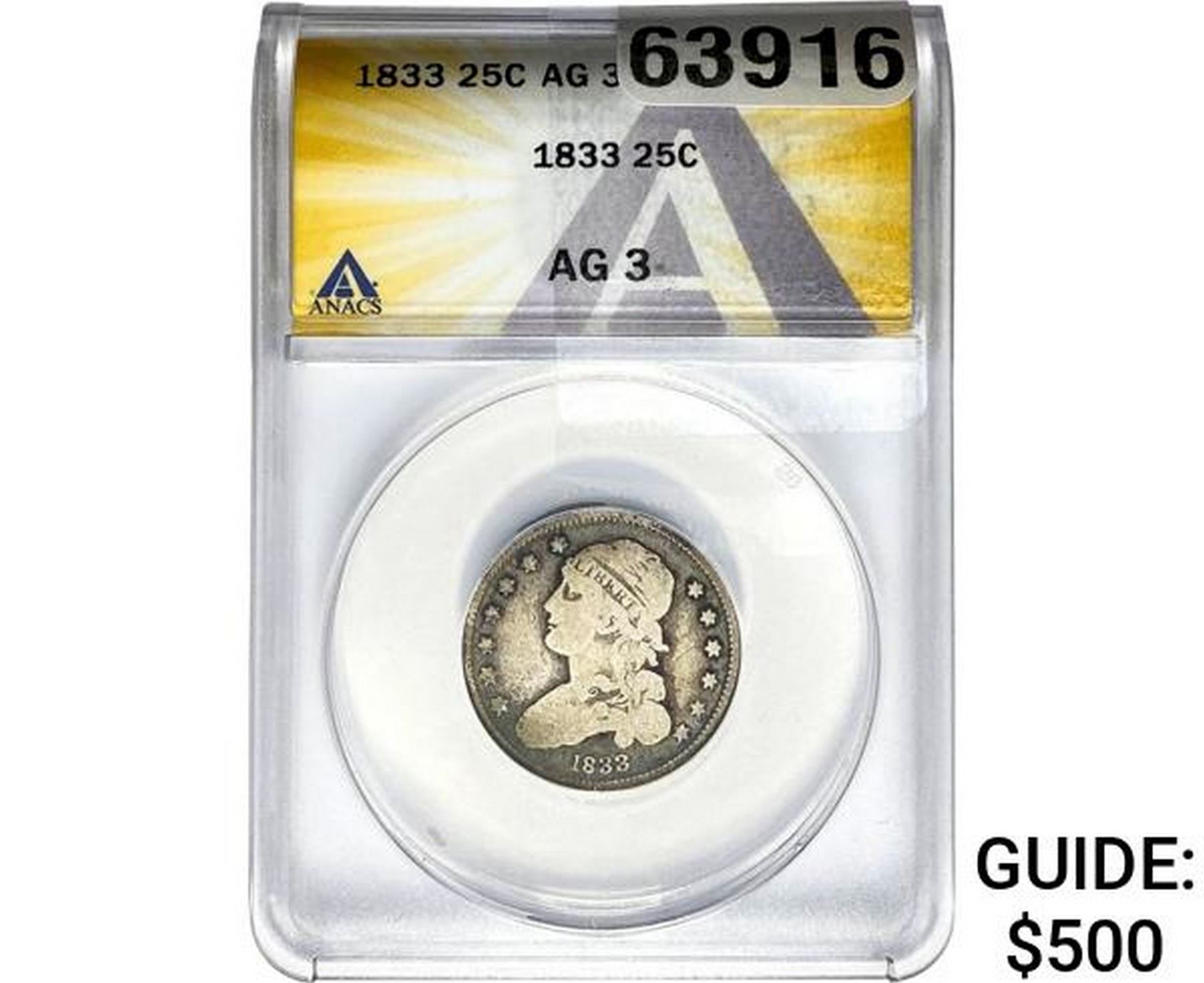 1833 Capped Bust Quarter ANACS AG3