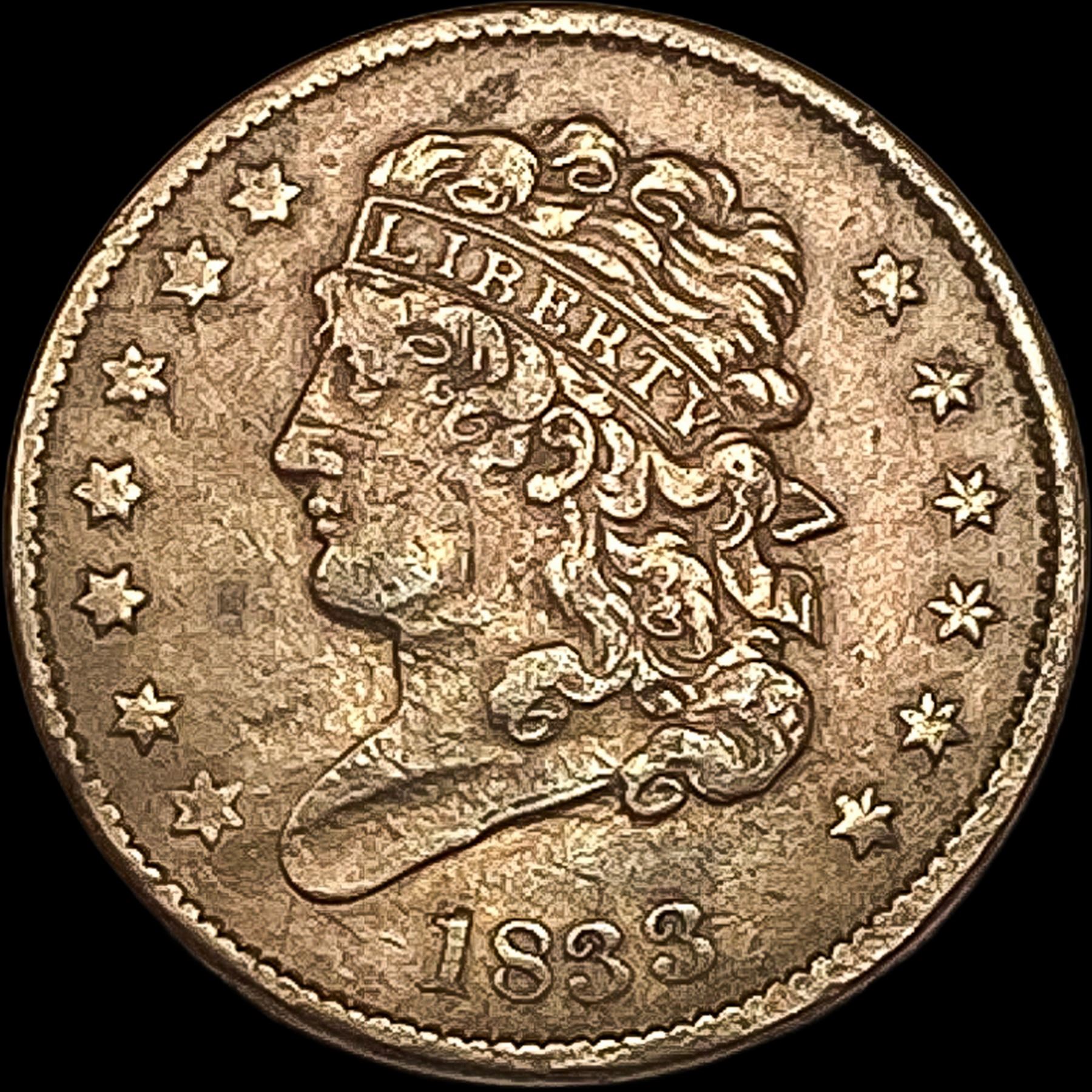 1833 Copper Half Cent NEARLY UNCIRCULATED