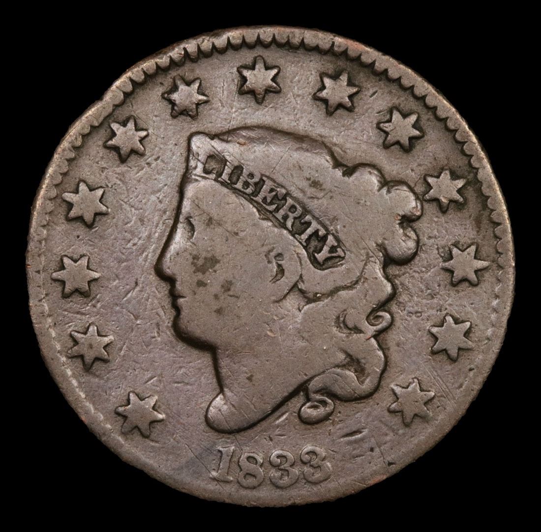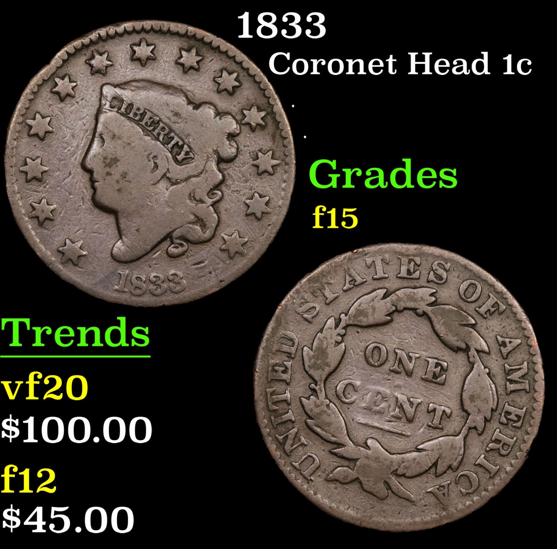1833 . . Coronet Head Large Cent 1c Grades f+.