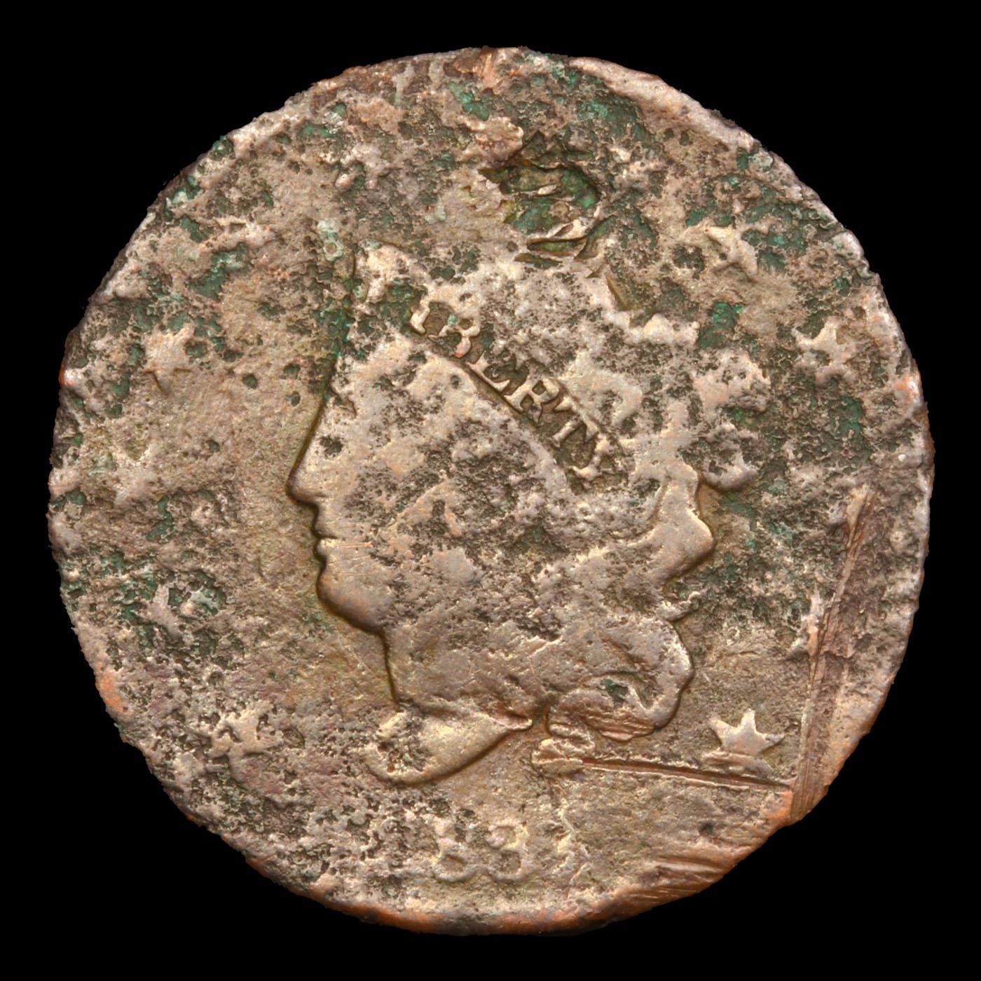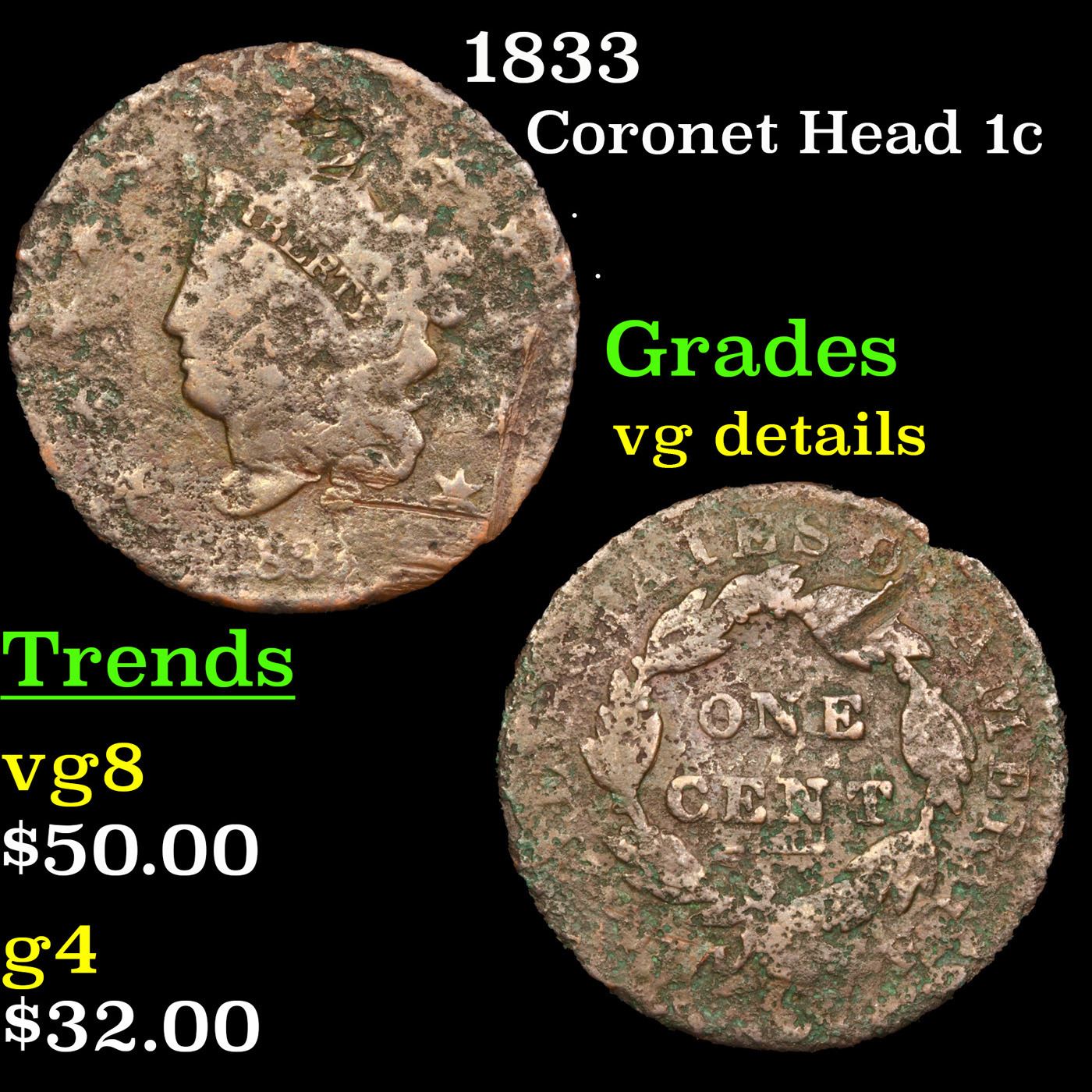 1833 Coronet Head Large Cent 1c Grades vg details.