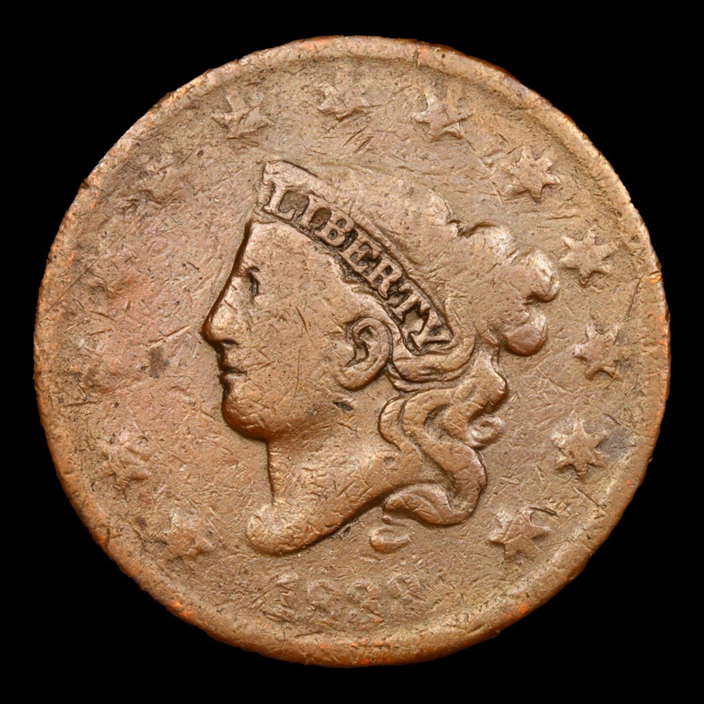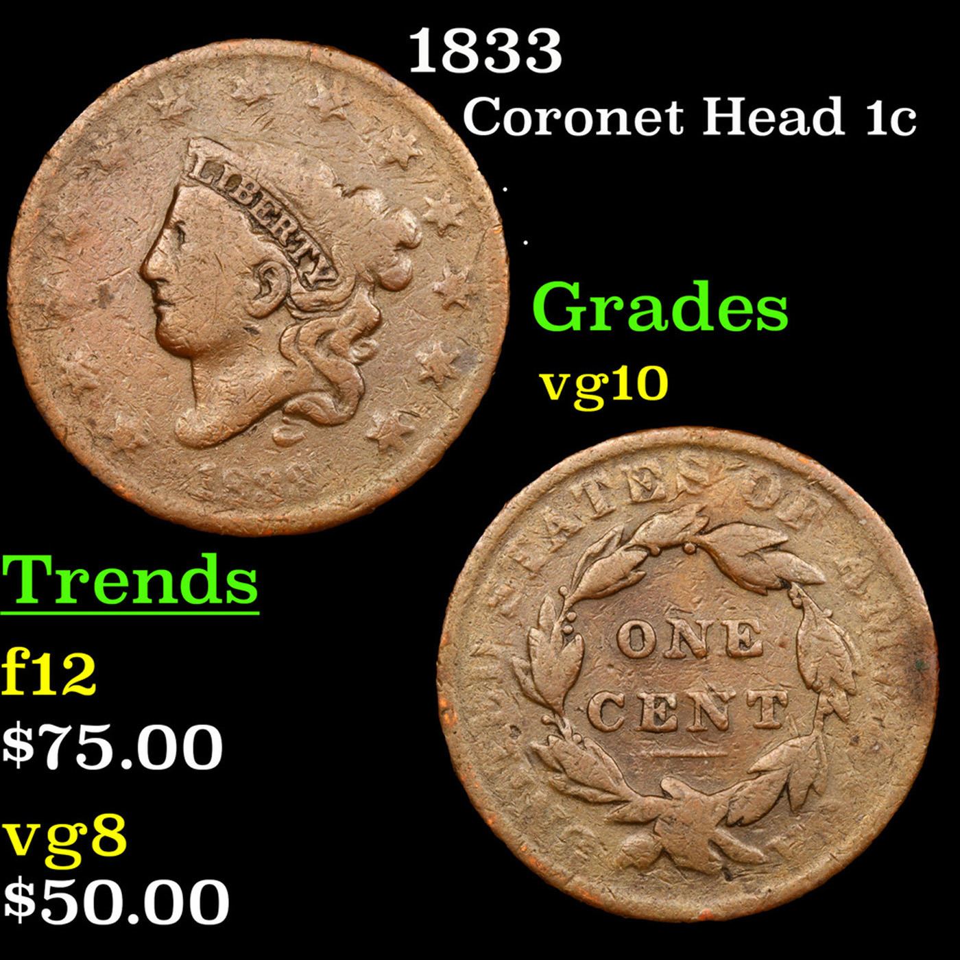 1833 Coronet Head Large Cent 1c Grades vg+.