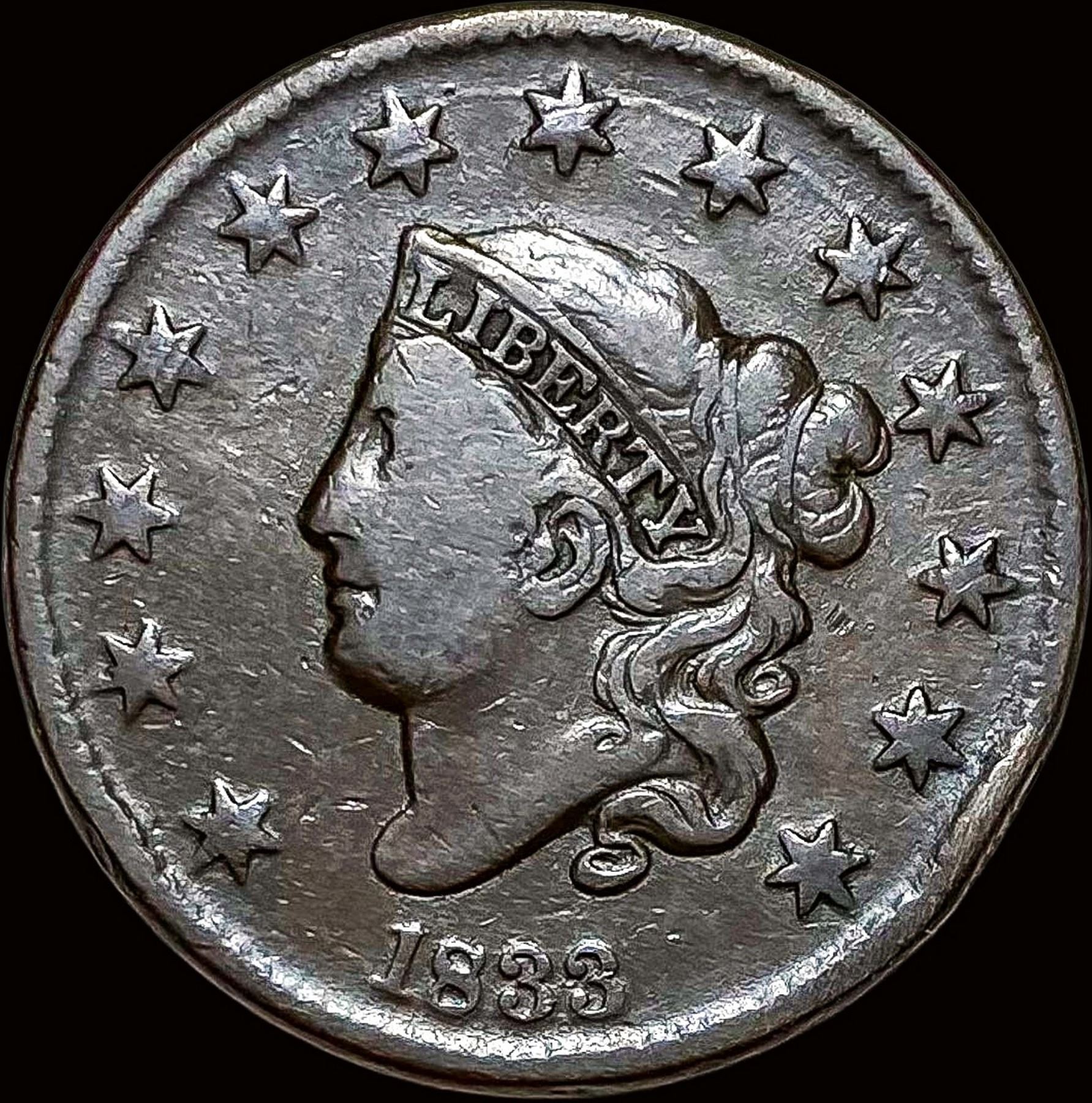 1833 Coronet Head Large Cent LIGHTLY CIRCULATED