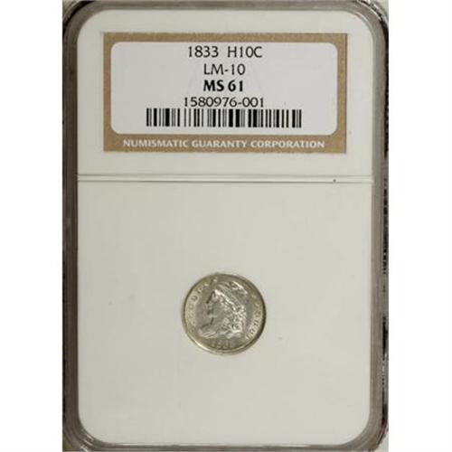 <B>1833 H10C MS61 NGC.</B></I> LM-10. NGC Census: (23/335). PCGS Population (10/251). Mintage: 1,370,000. Numismedia Wsl. Price for NGC/PCGS coin in MS61: $342. (#4280)<BR><BR><B>Coin Engraver:</B> William Kneass<BR><BR><b>Shipping:</b> Coins & Currency (<a target="_blank" href="http://www.heritageauctions.com/common/shipping.php">view shipping information</a>)