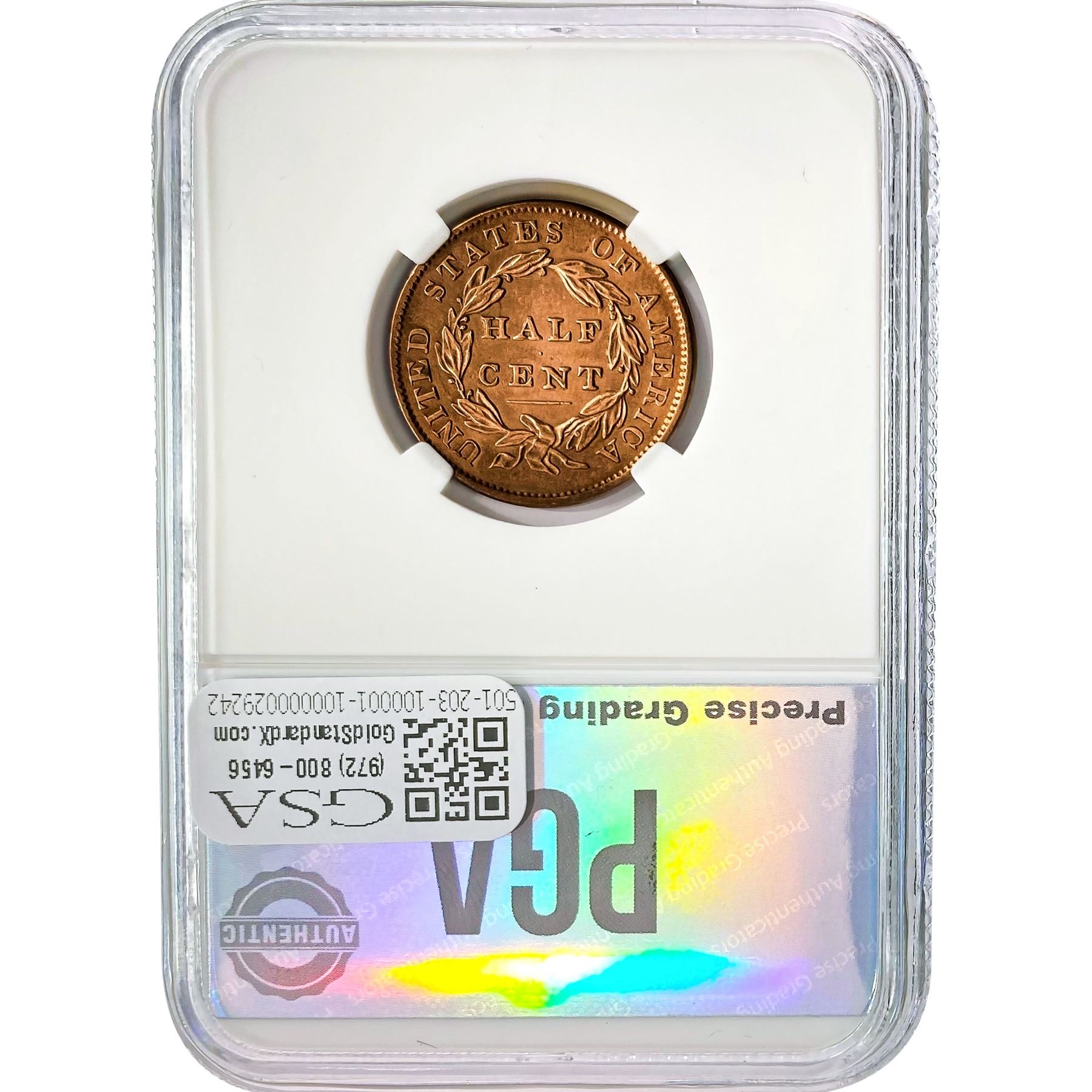 1833 Half Cent PGA MS64+ RED