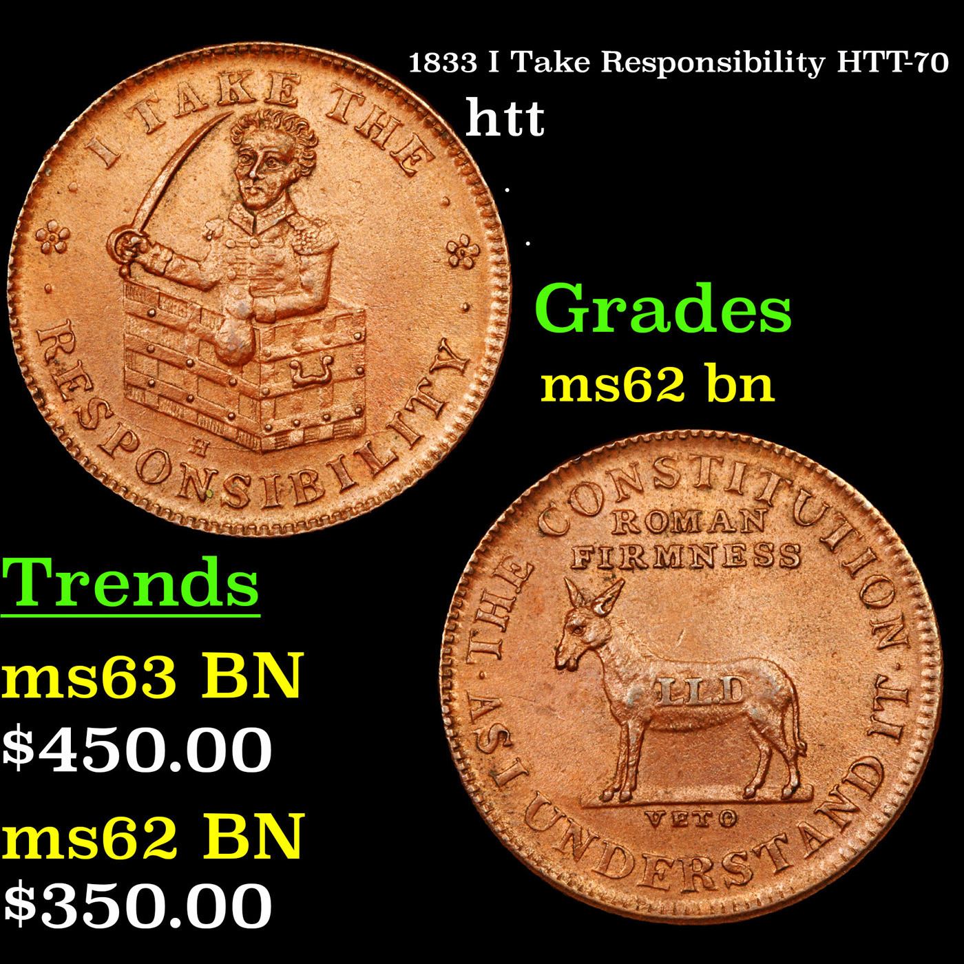 1833 I Take Responsibility HTT-70 Hard Times Token 1c Grades Select Unc BN.