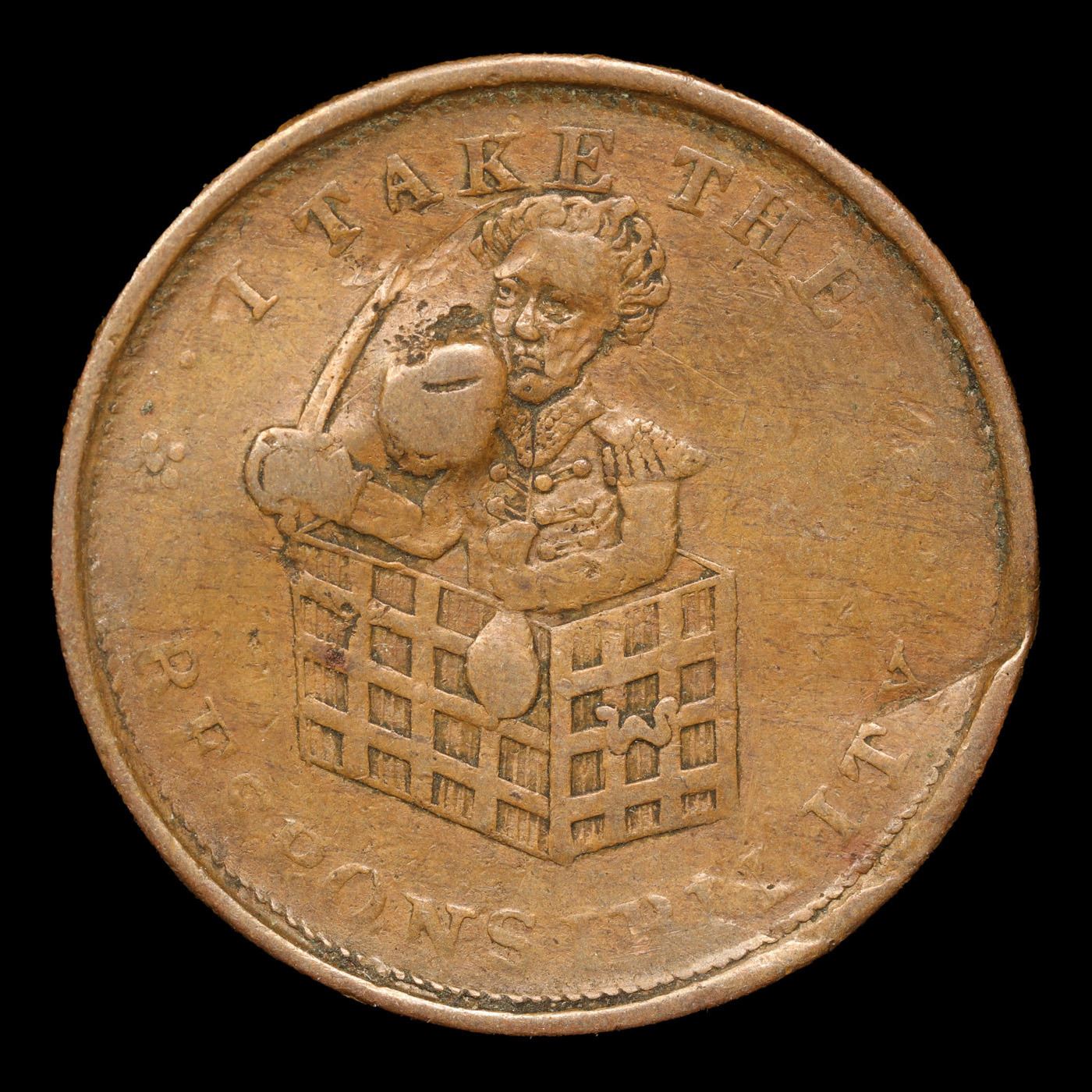 1833 I Take The Responsibility Hard Times Token HT-70 Counter Stamped 1c Grades vf details