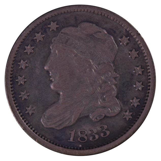 One 1833 Liberty Capped Bust Half Dime Coin.