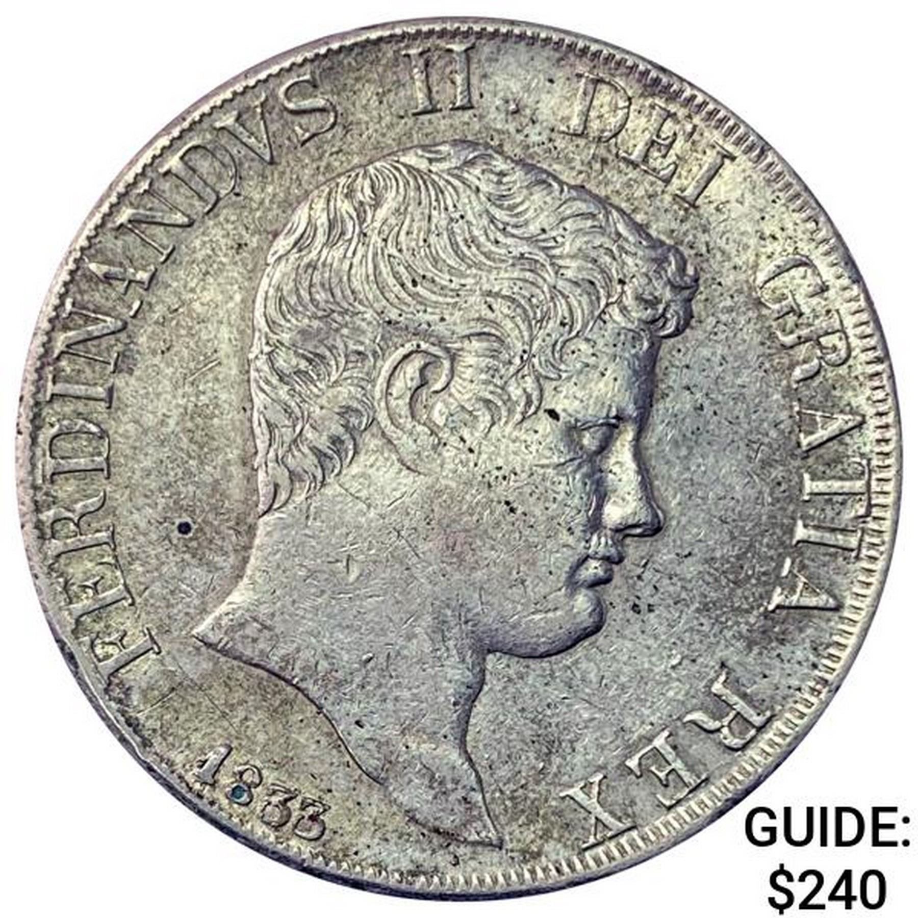 1833 Naples Silver 120 Grana CLOSELY UNCIRCULATED