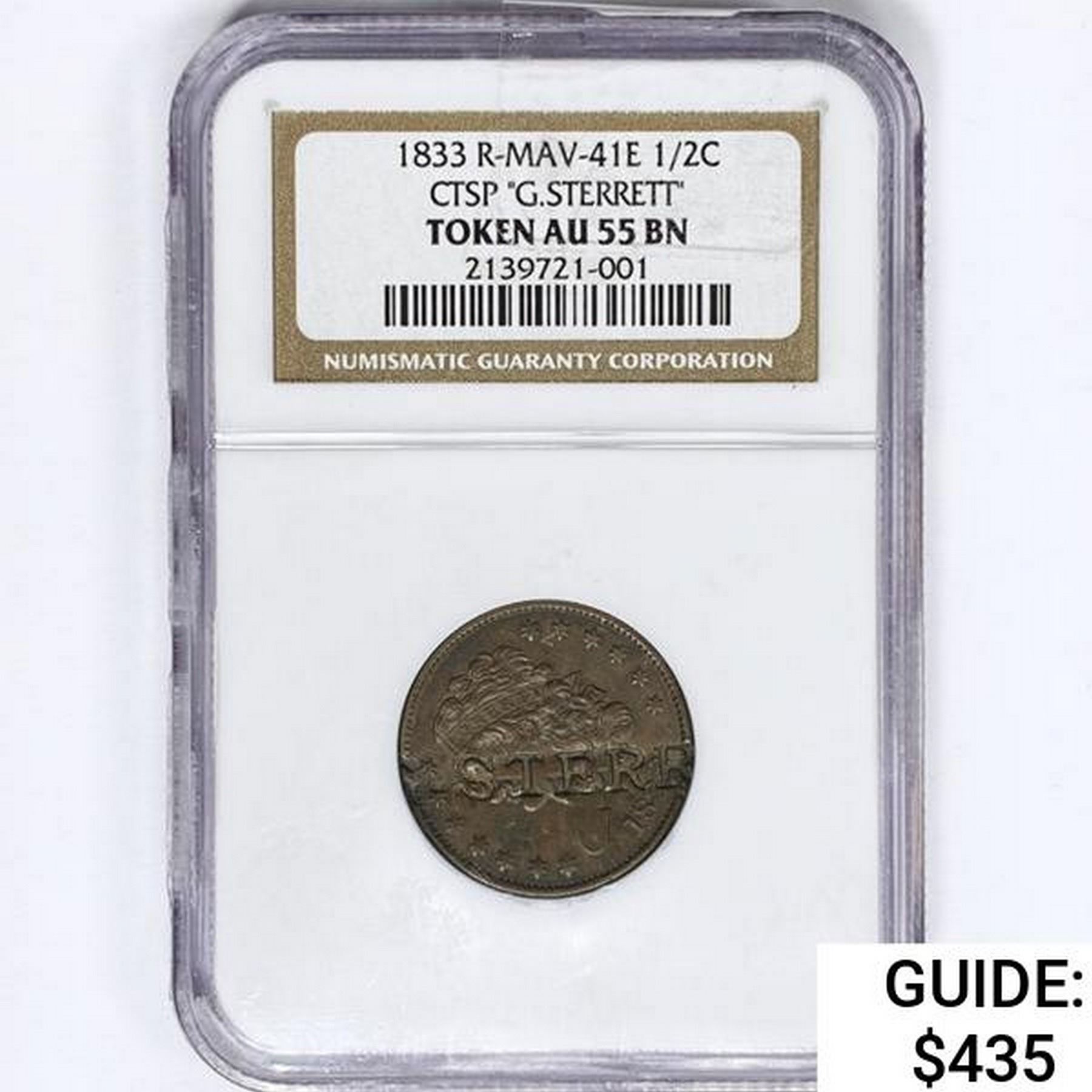 1833 R-MAV-41E 1/2C Token G.STERRETT NGC AU55 BN