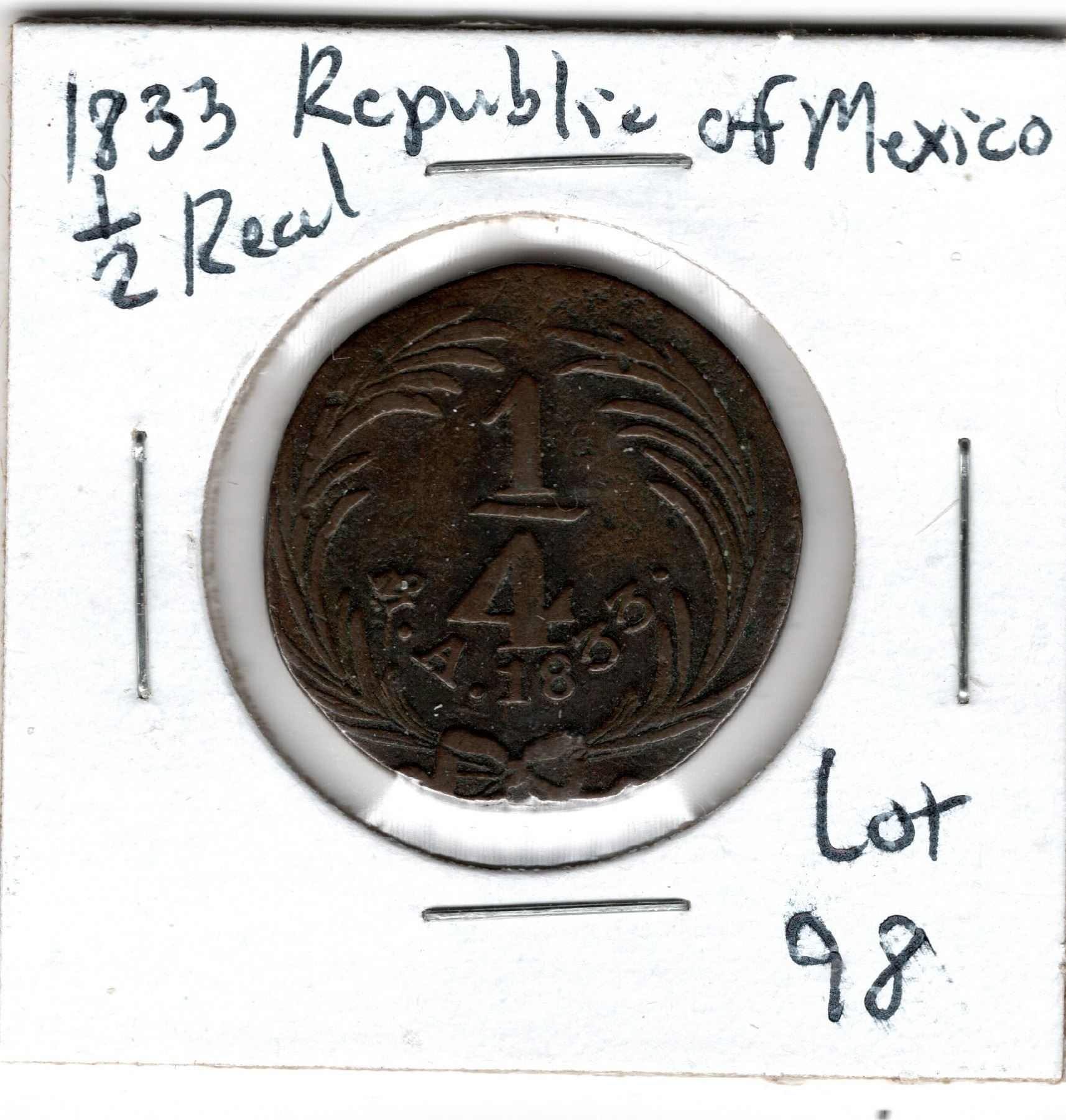 1833 REPUBLIC OF MEXICO ¼ REAL