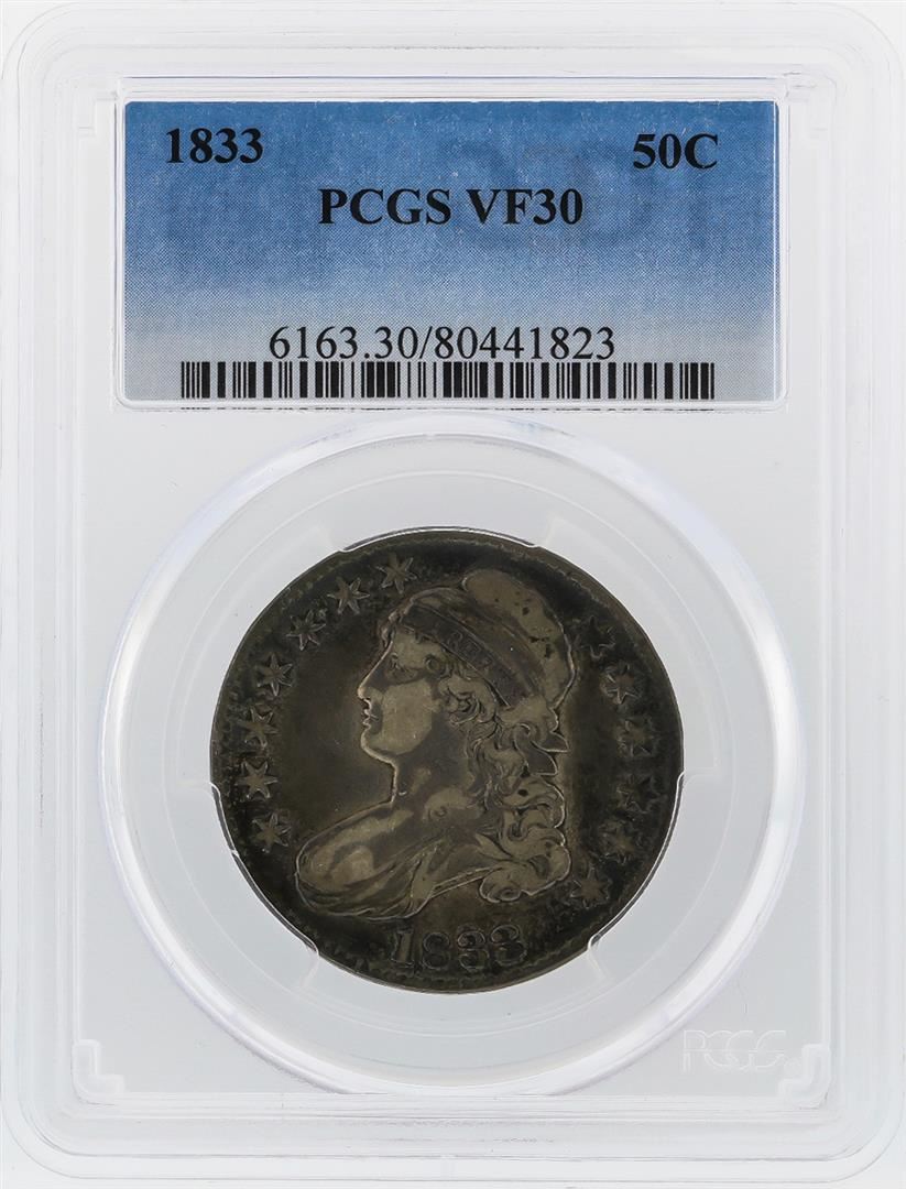 One 1833 Remodeled Portrait Half Dollar Coin PCGS VF30. PCGS Graded.