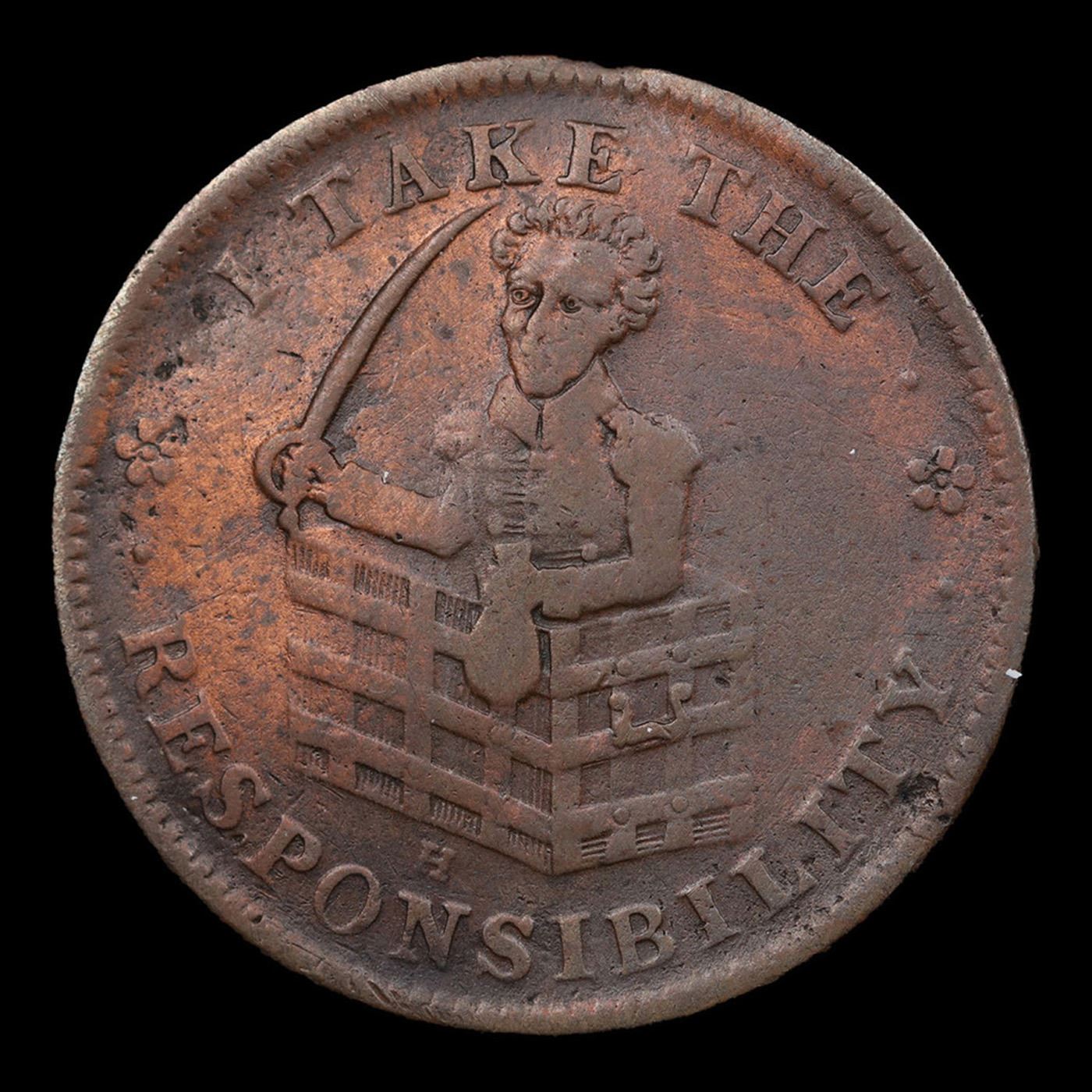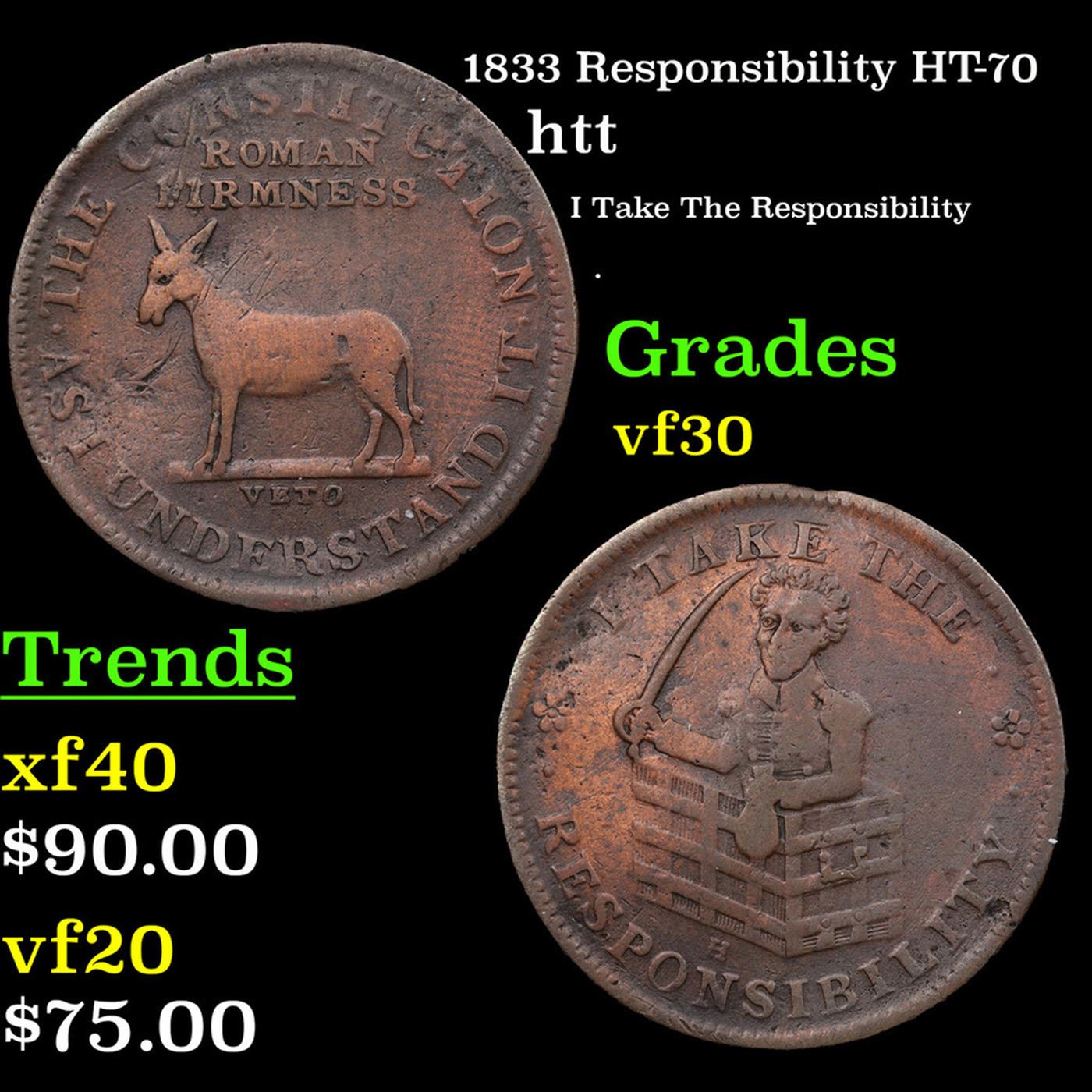 1833 Responsibility HT-70 Hard Times Token 1c Grades vf++.