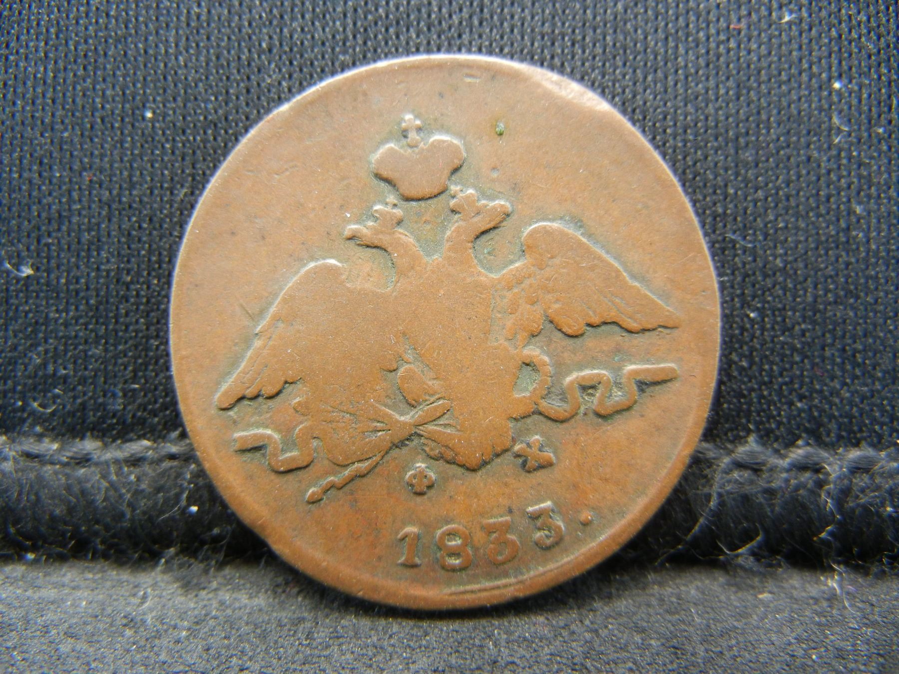1833 Russia 1 Kopek Copper Coin. Size of Quarter.