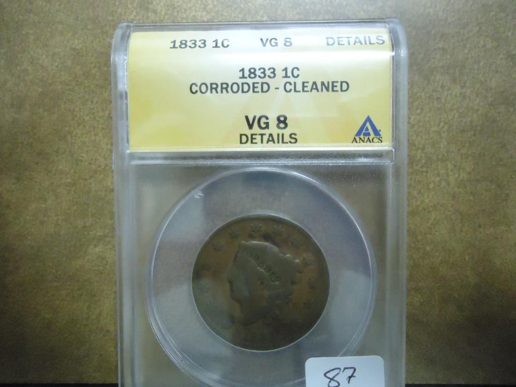 1833 US LARGE CENT ANACS (VERY GOOD 8 DETAILS)