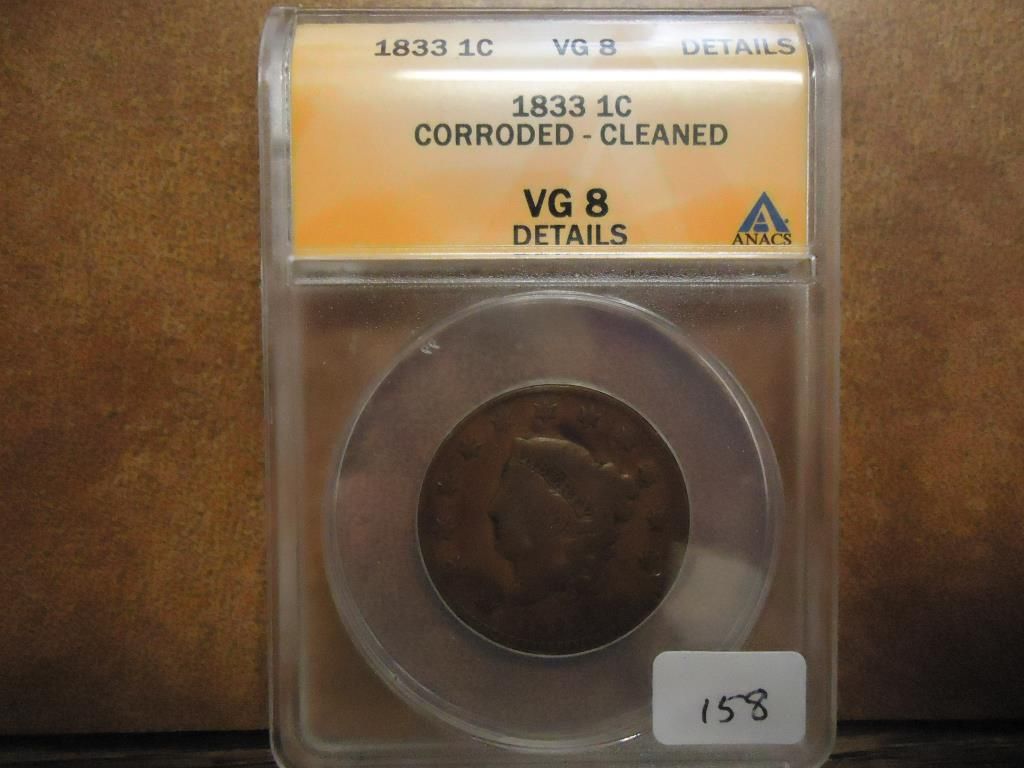1833 US LARGE CENT ANACS (VERY GOOD 8 DETAILS)