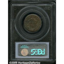 <B>1834 1/2 C MS64 Brown PCGS.</B></I> B-1, C-1, R.1. Light chestnut-brown color competes with iridescent powder-blue peripheral patina. Intricately struck, the first glance appearance suggests designation as a Gem, although thorough evaluation reveals subdued handling marks on the left obverse field and near the bust truncation.