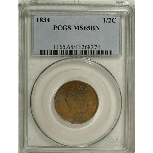 1834 1/2 C MS65 Brown PCGS. C-1, B-1, R.1. Predominate