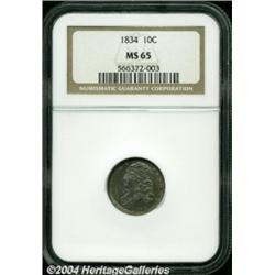 <table><tbody><tr><td><table> <TR><TD width="100%"><TABLE cellSpacing=1 cellPadding=3 width="100%" border=0><TBODY><TR><TD width="100%" bgColor=#79735c><FONT face=arial color=#ffffff size=3><B>Description</B> </FONT></TD></TR><TR><TD width="100%" bgColor=#ffffff><FONT face=arial size=2><B>1834 10C Large 4 MS65 NGC.</B></I> JR-2, R.3 (per November 2002 Logan Sale). This is a moderately toned sea-green, antique-gold, and gunmetal-gray example with a smooth, essentially mark-free appearance. The strike is first rate in virtually all areas, the eagle's right talon being the only detail that is noticeably deficient. Most likely among the finest surviving JR-2 Dimes from this year. </FONT></TD></TR></TBODY></TABLE></TD></TR></TBODY></TABLE><BR><A name=PricesRealized></A><TABLE cellSpacing=0 cellPadding=0 width="100%" bgColor=#000000 border=0><TBODY><TR><TD width="100%"><TABLE cellSpacing=1 cellPadding=3 width="100%" border=0><TBODY><TR><TD width="100%" bgColor=#79735c><A name=PR><FONT face=arial color=#ffffff size=3><B>Previous Prices from Heritage Auctions</B> </FONT></A></TD></TR><TR><TD bgColor=#f6f6ed><TABLE cellSpacing=0 cellPadding=0 width="100%" border=1><TBODY><TR><TD align=middle width="33%"><B>Date</B></TD><TD align=middle width="33%"><B>Service</B></TD><TD align=middle width="33%"><B>Price</B></TD></TR><TR bgColor=whitesmoke><TD width="33%"><B>03/01/2000</B></TD><TD width="33%">PCGS</TD><TD width="33%">$6,325.00</TD></TR></TBODY></TABLE></TD></TR><TR><TD bgColor=#ffffff><FONT face=arial size=1 ?>PLEASE NOTE: All prices realized reflect the final hammer price PLUS the buyer's premium in auctions that charge a buyer's premium. Each item has a notation at the top of the listing indicating whether that lot included a buyer's premium. Example: A item that sells with a final hammer price of $100 and a 20% buyer's premium will display with a price realized of $120. All information listed is intended to be as accurate as possible, but errors are possible. Please use this guide carefully and inform us of any inaccuracies. </FONT></TD></TR></TBODY></TABLE></TD></TR></TBODY></TABLE><BR><TABLE cellSpacing=0 cellPadding=0 width="100%" bgColor=#000000 border=0><TBODY><TR><TD width="100%"><TABLE cellSpacing=1 cellPadding=3 width="100%" border=0><TBODY><TR><TD width="100%" bgColor=#79735c colSpan=6><FONT face=arial color=#ffffff size=3><B>Price Guide*</B> </FONT></TD></TR><TR bgColor=#f6f6ed><TD align=middle><B>Grade</B> </TD><TD align=middle><B>Coin World<BR>(Trends)</B> </TD><TD align=middle><B>Numismedia<BR>Retail</B> </TD><TD align=middle><B>Numismedia<BR>Wholesale</B> </TD><TD align=middle><B>Coin<BR>Universe</B> </TD><TD align=middle><B>Heritage<BR>Value Index</B> </TD></TR><TR bgColor=#ffffff><TD align=middle>64</TD><TD align=right>---</TD><TD align=right>---</TD><TD align=right>---</TD><TD align=right>$2,850.00</TD><TD align=right>$1,886.67</TD></TR><TR style="FONT-WEIGHT: bold" bgColor=#cccfdd><TD align=middle>65</TD><TD align=right>---</TD><TD align=right>---</TD><TD align=right>---</TD><TD align=right>$7,000.00</TD><TD align=right>$4,655.00</TD></TR><TR bgColor=#ffffff><TD align=middle>66</TD><TD align=right>---</TD><TD align=right>---</TD><TD align=right>---</TD><TD align=right>$11,000.00</TD><TD align=right>$7,700.00</TD></TR><TR bgColor=#ffffff><TD colSpan=6><FONT size=1>*All information listed is intended to be as accurate as possible, but errors are possible. No item may be returned or refused based on this information which is provided as a service to our customers. You should contact each pricing source directly to determine the accuracy of this information. </FONT></TD></TR></TBODY></TABLE></TD></TR></TBODY></TABLE><BR><TABLE cellSpacing=0 cellPadding=0 width="100%" bgColor=#000000 border=0><TBODY><TR><TD width="100%"><TABLE cellSpacing=1 cellPadding=3 width="100%" border=0><TBODY><TR><TD width="100%" bgColor=#79735c><FONT face=arial color=#ffffff size=3><B>Population Guide</B> </FONT></TD></TR><TR bgColor=#ffffff><TD align=middle><!-- Begin Output of Population Grid--><TABLE cellSpacing=0 cellPadding=0 width="100%" border=0><TBODY><TR><TD vAlign=center><TABLE cellSpacing=0 width="100%" border=1 cellsadding="3"><TBODY><TR><TD vAlign=center><TABLE cellSpacing=0 cellPadding=3 width="100%" border=1><TBODY><TR><TD vAlign=center align=middle bgColor=#f0f1e8 colSpan=2 <CENTER><FONT face=Arial size=2><B>PCGS Pop </B></FONT><CENTER></CENTER></TD><TD vAlign=center align=middle bgColor=#f0f1e8 colSpan=2><CENTER><FONT face=Arial size=2><B>NGC Pop</B></CENTER></FONT></TD></TR><TR><TD vAlign=center><FONT face=Arial size=2>(65)</FONT> </TD><TD vAlign=center align=right><FONT face=Arial size=2>3</FONT> </TD><TD vAlign=center><FONT face=Arial size=2>(65)</FONT> </TD><TD vAlign=center align=right><FONT face=Arial size=2>0</FONT> </TD></TR><TR><TD vAlign=center><FONT face=Arial size=2>(>65)</FONT> </TD><TD vAlign=center align=right><FONT face=Arial size=2>4</FONT> </TD><TD vAlign=center><FONT face=Arial size=2>(>65)</FONT> </TD><TD vAlign=center align=right><FONT face=Arial size=2>0</FONT> </TD></TR></TBODY></TABLE></TD></TR></TBODY></TABLE></TD></TR></TBODY></TABLE><!-- End Output of Population Grid--></TD></TR></TBODY></TABLE></TD></TR></TBODY></TABLE><BR><TABLE cellSpacing=0 cellPadding=0 width="100%" bgColor=#000000 border=0><TBODY><TR> <font color='#000000'><span style='background-color: #FFFFFF'><td bgcolor='#FFFFFE'> Important notice: Heritage usually auctions material at the rate of 200-250 lots per hour. On some occasions eBay Live bid software or the Internet may not be able to keep up with the pace of the auction. We recommend placing a realistic absentee bid now as insurance to avoid disappointment. Occasionally the auctioneer may eliminate or reject an eBay Live bid, and the auctioneer may also reopen a lot after the close of the eBay live bidding (usually because we missed an audience bid), and may reject your bid even if it shows you as the winning bidder. By bidding via eBay Live, 