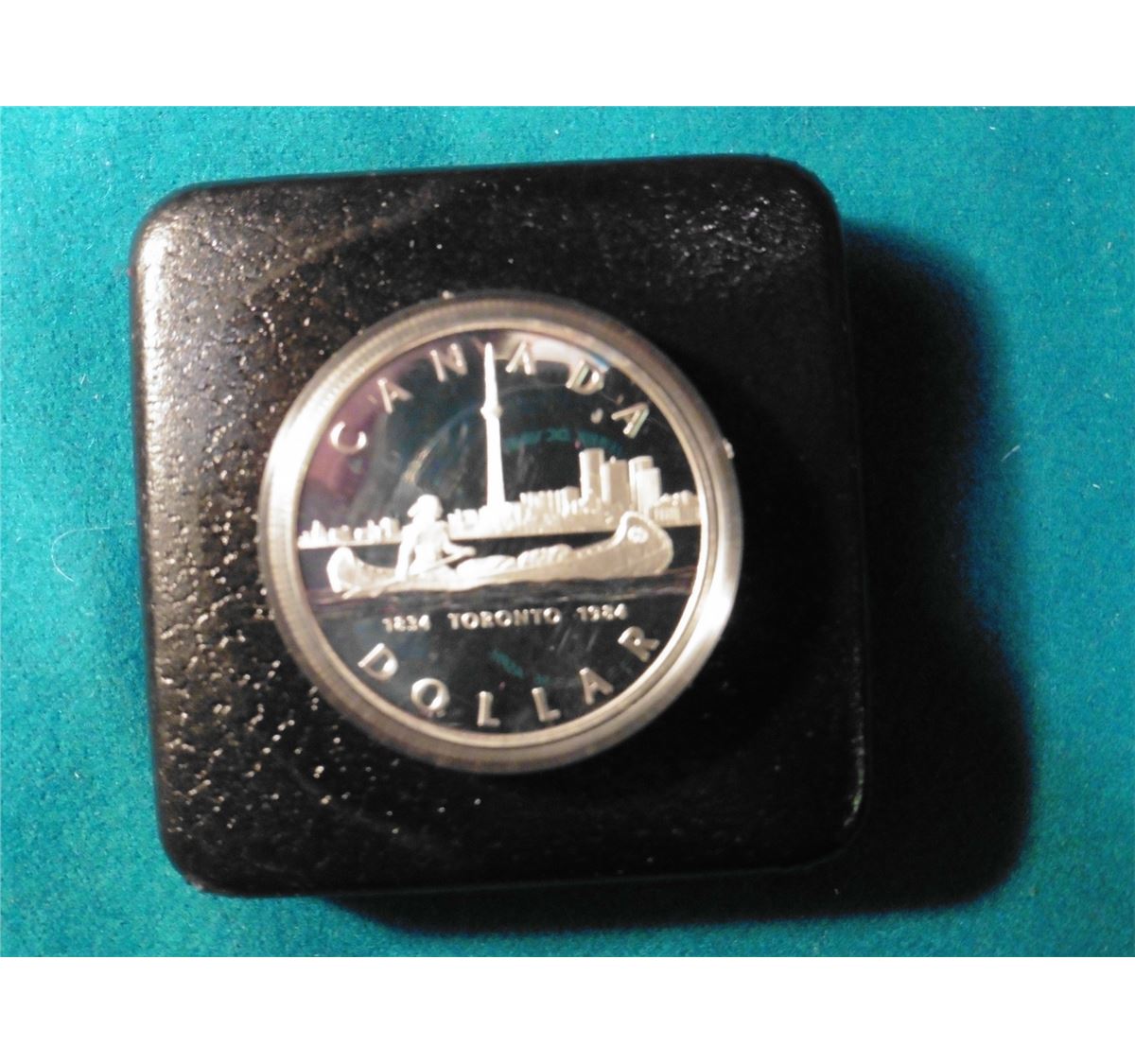 1834-1934 Toronto, Canada Proof Commemorative Silver Dollar in original box of issue. No literature.