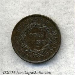 <table><tr><td><table><tr><td>1834 1C Large 8, Small Stars, Medium Letters XF45 Uncertified. N-4, R.2. Die State B. A deep chestnut-brown piece with a few minor abrasions. The left reverse border is slightly rough.Ex: Patterson Sale (Kagin's, 5/88), lot 1180. <BR><BR><B>Important notice:</B> Heritage usually auctions material at the rate of 200-250 lots per hour. On some occasions eBay Live bid software or the Internet may not be able to keep up with the pace of the auction. We recommend placing a realistic absentee bid now as insurance to avoid disappointment. Occasionally the auctioneer may eliminate or reject an eBay Live bid, and the auctioneer may also reopen a lot after the close of the eBay live bidding (usually because we missed an audience bid), and may reject your bid even if it shows you as the winning bidder. By bidding via eBay Live, you agree that Heritage may award the lot to another bidder at its sole discretion under the circumstances described above or any other reasonable circumstances. Since eBay bids are not shown to us until we open the lot on the floor, we treat those bids just like floor bids. In most cases the floor responds before the eBay bid is presented to us, due to Internet lag time, so for consistency we have made it a policy that floor bids are always considered first over tie eBay live bids. Also please note that all Heritage lots purchased through eBay Live carry a 20% Buyer's Premium. Please make sure you read the Terms and Conditions before you bid. <BR><BR><B>IMPORTANT ANNOUNCEMENT ABOUT RESERVES:</B> Heritage now divulges all reserves on its web site 7 days before every auction. If you want to know whether the reserve on this lot has been met, and if not, what the reserve amount is, please visit this lot page on the HeritageCoin.com web site, or email: bid@HeritageGalleries.com </span></font></td></tr></table></td></tr></table>
