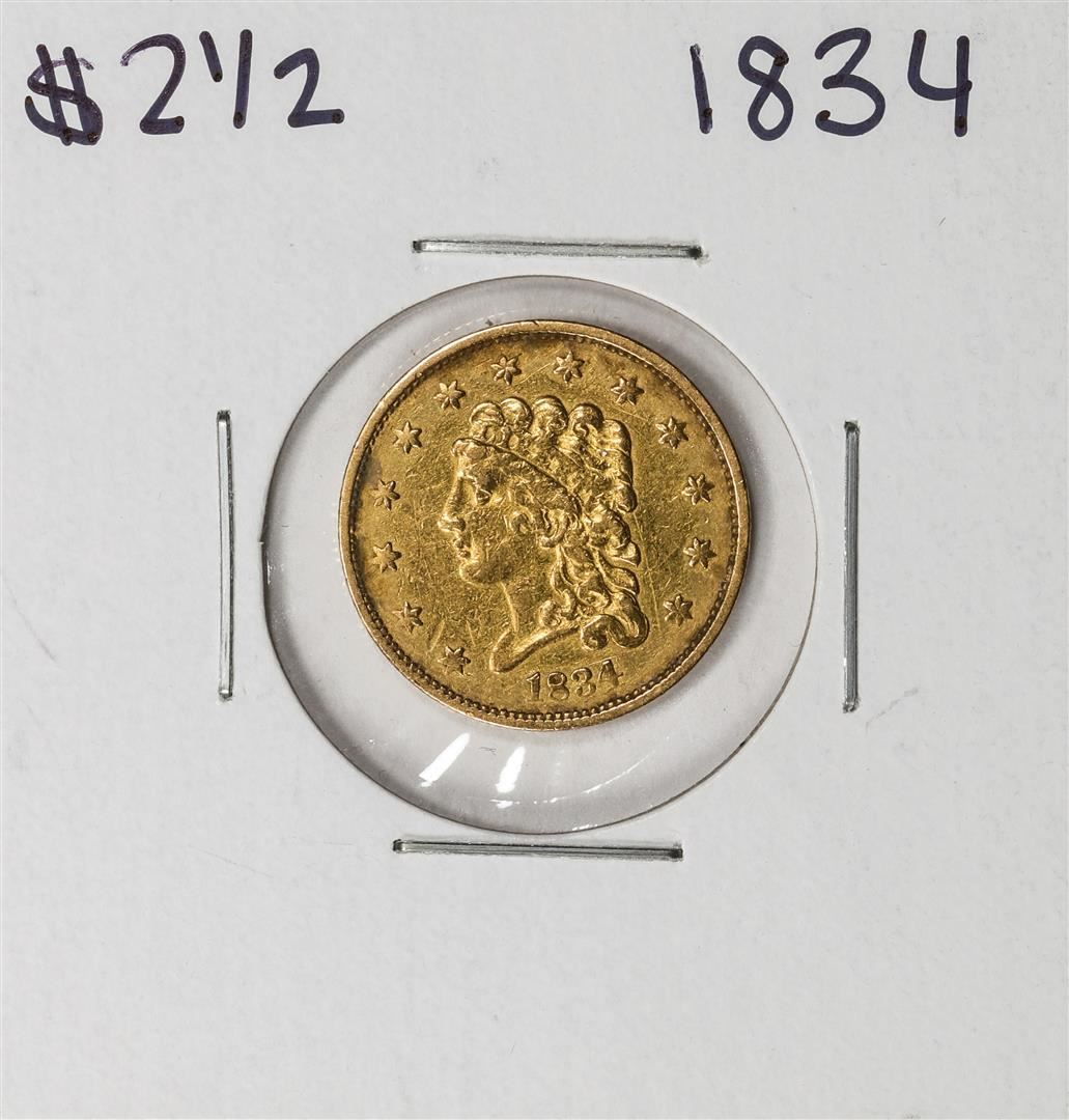 One 1834 $2 1/2 Classic Head Quarter Eagle Gold Coin.