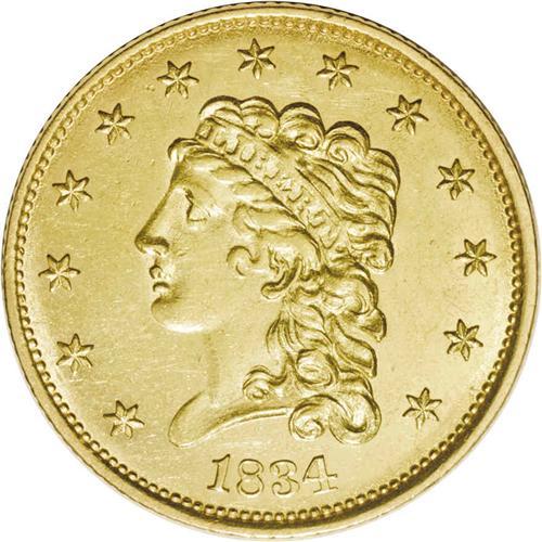 1834 $2 1/2 Classic MS62 NGC. Breen-6138, Small Head, 1834[$2 1/2] Classic MS62 NGC.