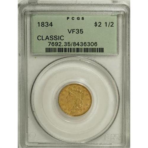 1834 $2 1/2 Classic VF35 PCGS. PCGS Population (12