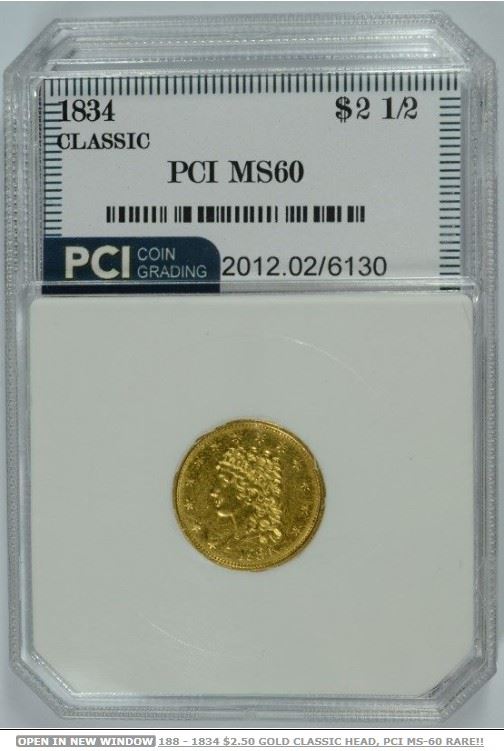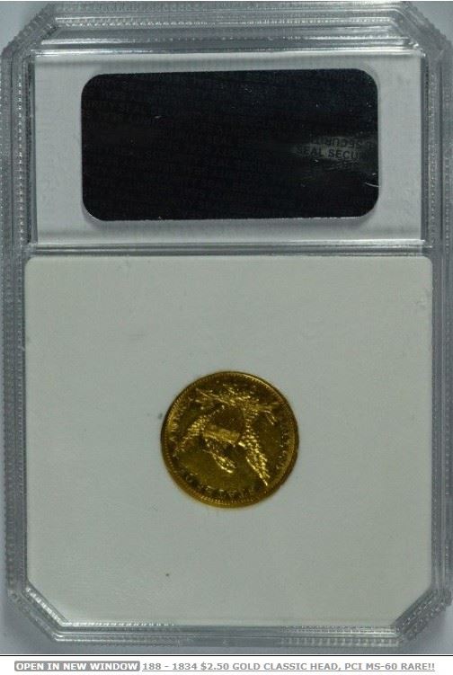 1834 $2.5 US Gold Classic Head - PCI MS-60 - Value: $3450.00(US)