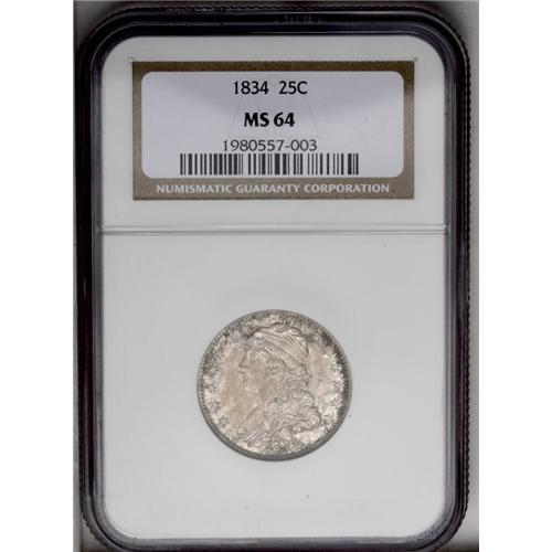 1834 25C MS64 NGC. B.1, R.1. Characterized by star 1 t 1834[25C] MS64 NGC.