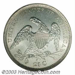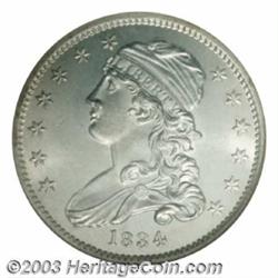 <TABLE cellSpacing=0 cellPadding=0 width="100%" bgColor=#000000 border=0><TBODY><TR><TD width="100%"><TABLE cellSpacing=1 cellPadding=3 width="100%" border=0><TBODY><TR><TD width="100%" bgColor=#79735c><FONT face=arial color=#ffffff size=3><B>Description</B> </FONT></TD></TR><TR><TD width="100%" bgColor=#ffffff><FONT face=arial size=2><B>1834 25C MS65 NGC.</B></I> B-1, R.1. The first star is high above bust truncation, and the reverse has no period after the denomination. There are traces of apricot hues along the peripheries, but the surfaces are otherwise fully brilliant. A lustrous Gem that has an essentially unimprovable strike. No abrasions are remotely worthy of individual mention, and the eye appeal is imposing. The dies are lightly rotated clockwise. An available date and variety, but rare in Mint State and decidedly rare as a Gem. A splendid type coin. Population: 12 in 65, 4 finer (7/03). </FONT></TD></TR></TBODY></TABLE></TD></TR></TBODY></TABLE><BR><A name=PricesRealized></A><TABLE cellSpacing=0 cellPadding=0 width="100%" bgColor=#000000 border=0><TBODY><TR><TD width="100%"><TABLE cellSpacing=1 cellPadding=3 width="100%" border=0><TBODY><TR><TD width="100%" bgColor=#79735c><A name=PR><FONT face=arial color=#ffffff size=3><B>Previous Prices from Heritage Auctions</B> </FONT></A></TD></TR><TR><TD bgColor=#f6f6ed><TABLE cellSpacing=0 cellPadding=0 width="100%" border=1><TBODY><TR><TD align=middle width="33%"><B>Date</B></TD><TD align=middle width="33%"><B>Service</B></TD><TD align=middle width="33%"><B>Price</B></TD></TR><TR bgColor=whitesmoke><TD width="33%"><B>01/11/2003</B></TD><TD width="33%">PCGS</TD><TD width="33%">$14,950.00</TD></TR><TR bgColor=whitesmoke><TD width="33%"><B>09/01/1999</B></TD><TD width="33%">NGC</TD><TD width="33%">$6,670.00</TD></TR></TBODY></TABLE></TD></TR><TR><TD bgColor=#ffffff><FONT face=arial size=1 ?>PLEASE NOTE: All prices realized reflect the final hammer price PLUS the buyer's premium in auctions that charge a buyer's premium. Each item has a notation at the top of the listing indicating whether that lot included a buyer's premium. Example: A item that sells with a final hammer price of $100 and a 20% buyer's premium will display with a price realized of $120. All information listed is intended to be as accurate as possible, but errors are possible. Please use this guide carefully and inform us of any inaccuracies. </FONT></TD></TR></TBODY></TABLE></TD></TR></TBODY></TABLE><BR><TABLE cellSpacing=0 cellPadding=0 width="100%" bgColor=#000000 border=0><TBODY><TR><TD width="100%"><TABLE cellSpacing=1 cellPadding=3 width="100%" border=0><TBODY><TR><TD width="100%" bgColor=#79735c colSpan=6><FONT face=arial color=#ffffff size=3><B>Price Guide*</B> </FONT></TD></TR><TR bgColor=#f6f6ed><TD align=middle><B>Grade</B> </TD><TD align=middle><B>Coin World<BR>(Trends)</B> </TD><TD align=middle><B>Numismedia<BR>Retail</B> </TD><TD align=middle><B>Numismedia<BR>Wholesale</B> </TD><TD align=middle><B>Coin<BR>Universe</B> </TD><TD align=middle><B>Heritage<BR>Value Index</B> </TD></TR><TR bgColor=#ffffff><TD align=middle>64</TD><TD align=right>$4,150.00</TD><TD align=right>---</TD><TD align=right>$3,650.00</TD><TD align=right>$6,000.00</TD><TD align=right>$3,582.75</TD></TR><TR style="FONT-WEIGHT: bold" bgColor=#cccfdd><TD align=middle>65</TD><TD align=right>$13,000.00</TD><TD align=right>---</TD><TD align=right>$11,000.00</TD><TD align=right>$21,000.00</TD><TD align=right>$11,083.33</TD></TR><TR bgColor=#ffffff><TD align=middle>66</TD><TD align=right>---</TD><TD align=right>---</TD><TD align=right>$22,500.00</TD><TD align=right>---</TD><TD align=right>---</TD></TR><TR bgColor=#ffffff><TD colSpan=6><FONT size=1>*All information listed is intended to be as accurate as possible, but errors are possible. No item may be returned or refused based on this information which is provided as a service to our customers. You should contact each pricing source directly to determine the accuracy of this information. </FONT></TD></TR></TBODY></TABLE></TD></TR></TBODY></TABLE><BR><TABLE cellSpacing=0 cellPadding=0 width="100%" bgColor=#000000 border=0><TBODY><TR><TD width="100%"><TABLE cellSpacing=1 cellPadding=3 width="100%" border=0><TBODY><TR><TD width="100%" bgColor=#79735c><FONT face=arial color=#ffffff size=3><B>Population Guide</B> </FONT></TD></TR><TR bgColor=#ffffff><TD align=middle><!-- Begin Output of Population Grid--><TABLE cellSpacing=0 cellPadding=0 width="100%" border=0><TBODY><TR><TD vAlign=center><TABLE cellSpacing=0 width="100%" border=1 cellsadding="3"><TBODY><TR><TD vAlign=center><TABLE cellSpacing=0 cellPadding=3 width="100%" border=1><TBODY><TR><TD vAlign=center align=middle bgColor=#f0f1e8 colSpan=2 <CENTER><FONT face=Arial size=2><B>PCGS Pop </B></FONT><CENTER></CENTER></TD><TD vAlign=center align=middle bgColor=#f0f1e8 colSpan=2><CENTER><FONT face=Arial size=2><B>NGC Pop</B></CENTER></FONT></TD></TR><TR><TD vAlign=center><FONT face=Arial size=2>(65)</FONT> </TD><TD vAlign=center align=right><FONT face=Arial size=2>7</FONT> </TD><TD vAlign=center><FONT face=Arial size=2>(65)</FONT> </TD><TD vAlign=center align=right><FONT face=Arial size=2>12</FONT> </TD></TR><TR><TD vAlign=center><FONT face=Arial size=2>(>65)</FONT> </TD><TD vAlign=center align=right><FONT face=Arial size=2>2</FONT> </TD><TD vAlign=center><FONT face=Arial size=2>(>65)</FONT> </TD><TD vAlign=center align=right><FONT face=Arial size=2>4</FONT> </TD></TR></TBODY></TABLE></TD></TR></TBODY></TABLE></TD></TR></TBODY></TABLE><!-- End Output of Population Grid--> Important notice: Heritage usually auctions material at the rate of 200-250 lots per hour. On some occasions eBay Live bid software or the Internet may not be able to keep up with the pace of the auction. We recommend placing a realistic absentee bid now as insurance to avoid disappointment. Occasionally the auctioneer may eliminate or reject an eBay Live bid, and the auctioneer may also reopen a lot after the close of the eBay live b