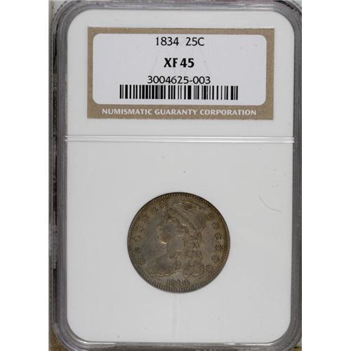 1834 25C XF45 NGC. NGC Census: (86/448). PCGS Popu